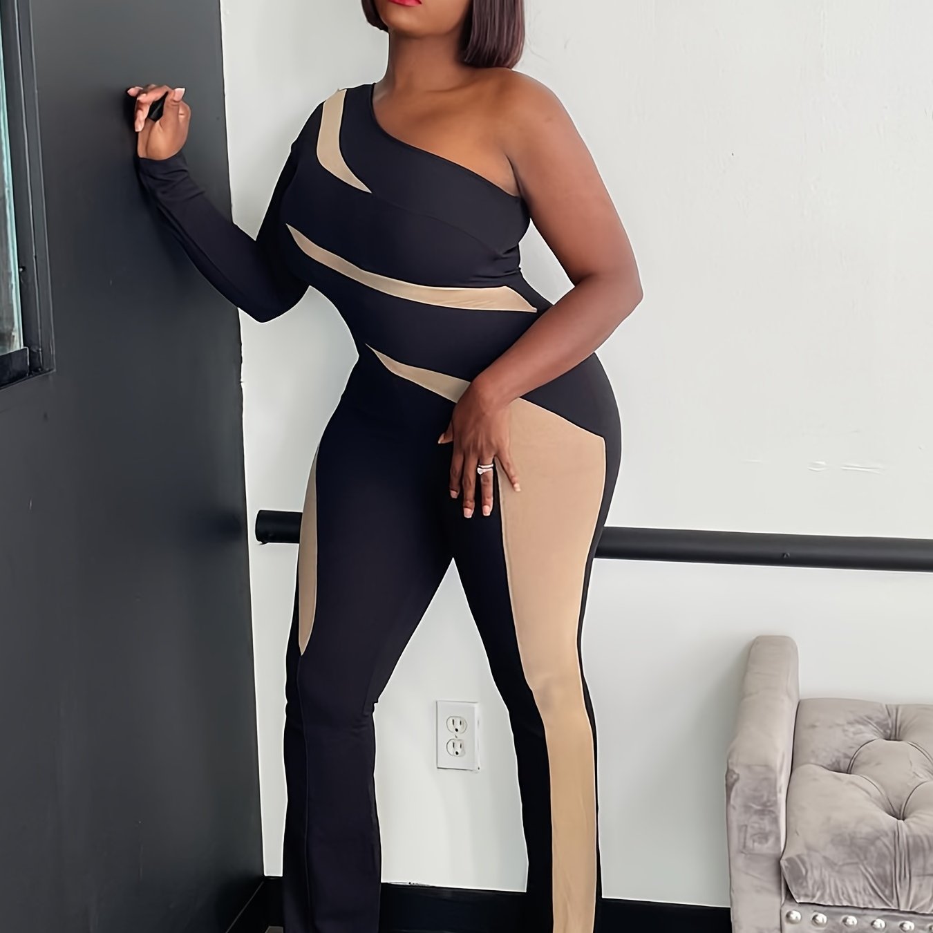 Sleek black & beige color block design