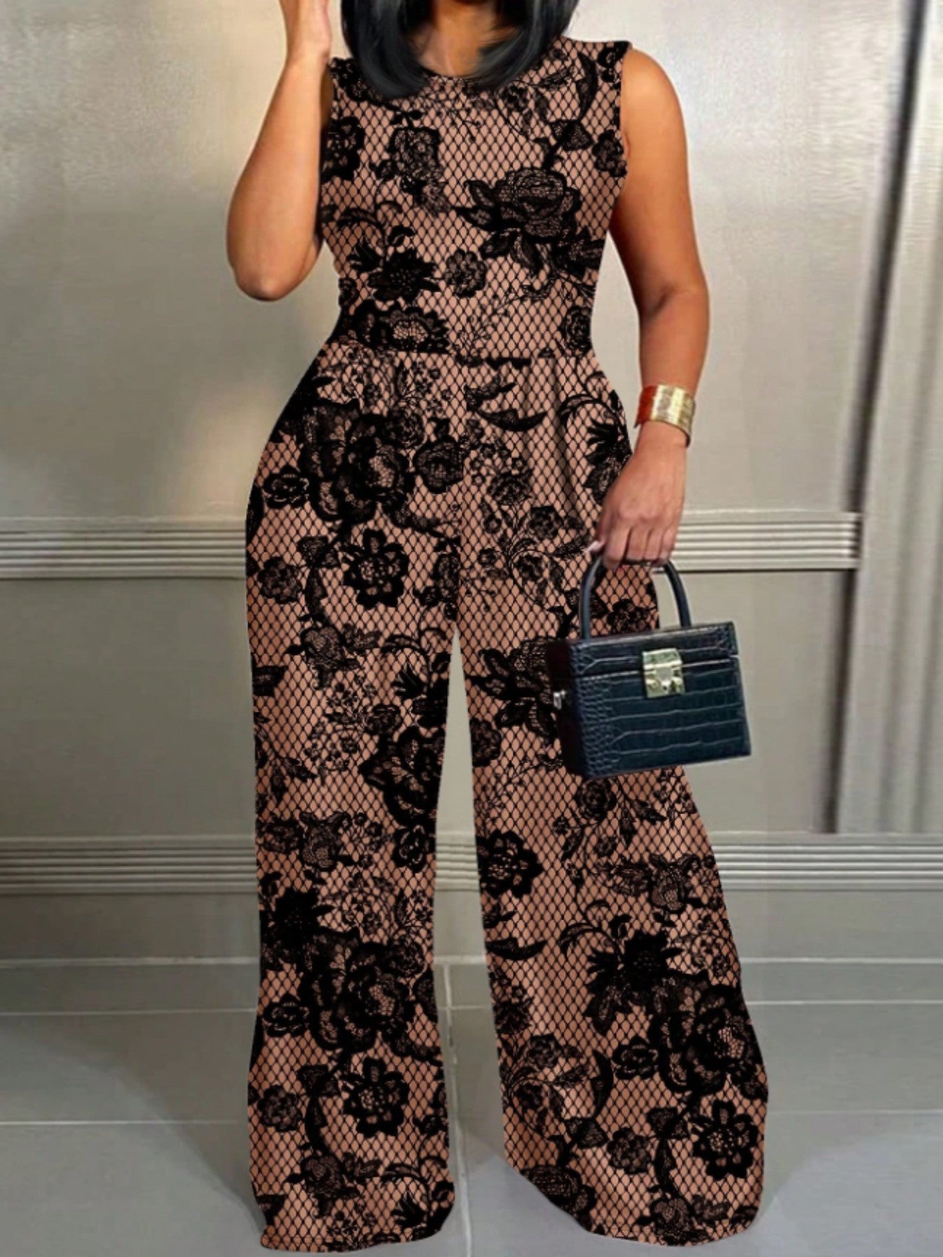 Black Floral Wide-Leg Jumpsuit – Elegant Sleeveless One-Piece Outfit