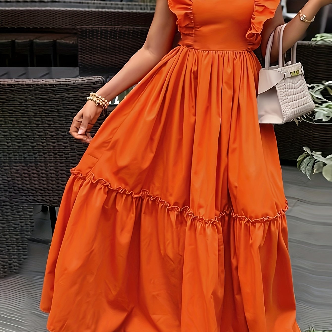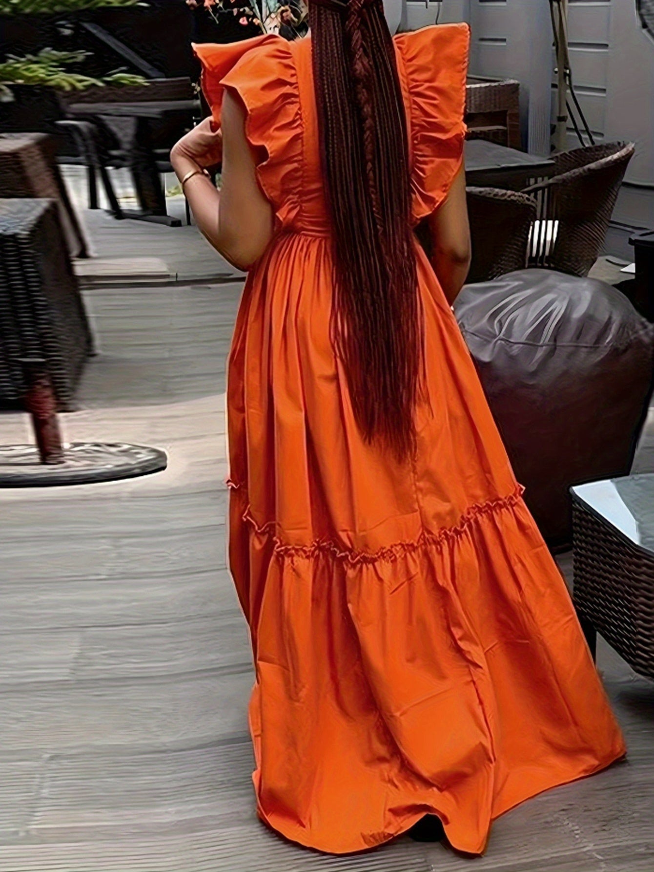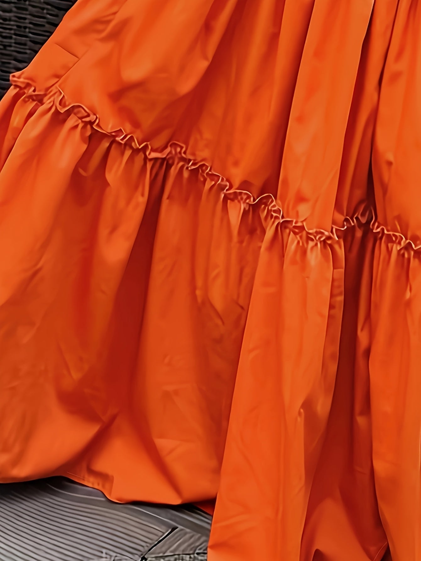 Bright Orange Cinched Waist Midi Dress – Flowy, Feminine & Sun-Kissed