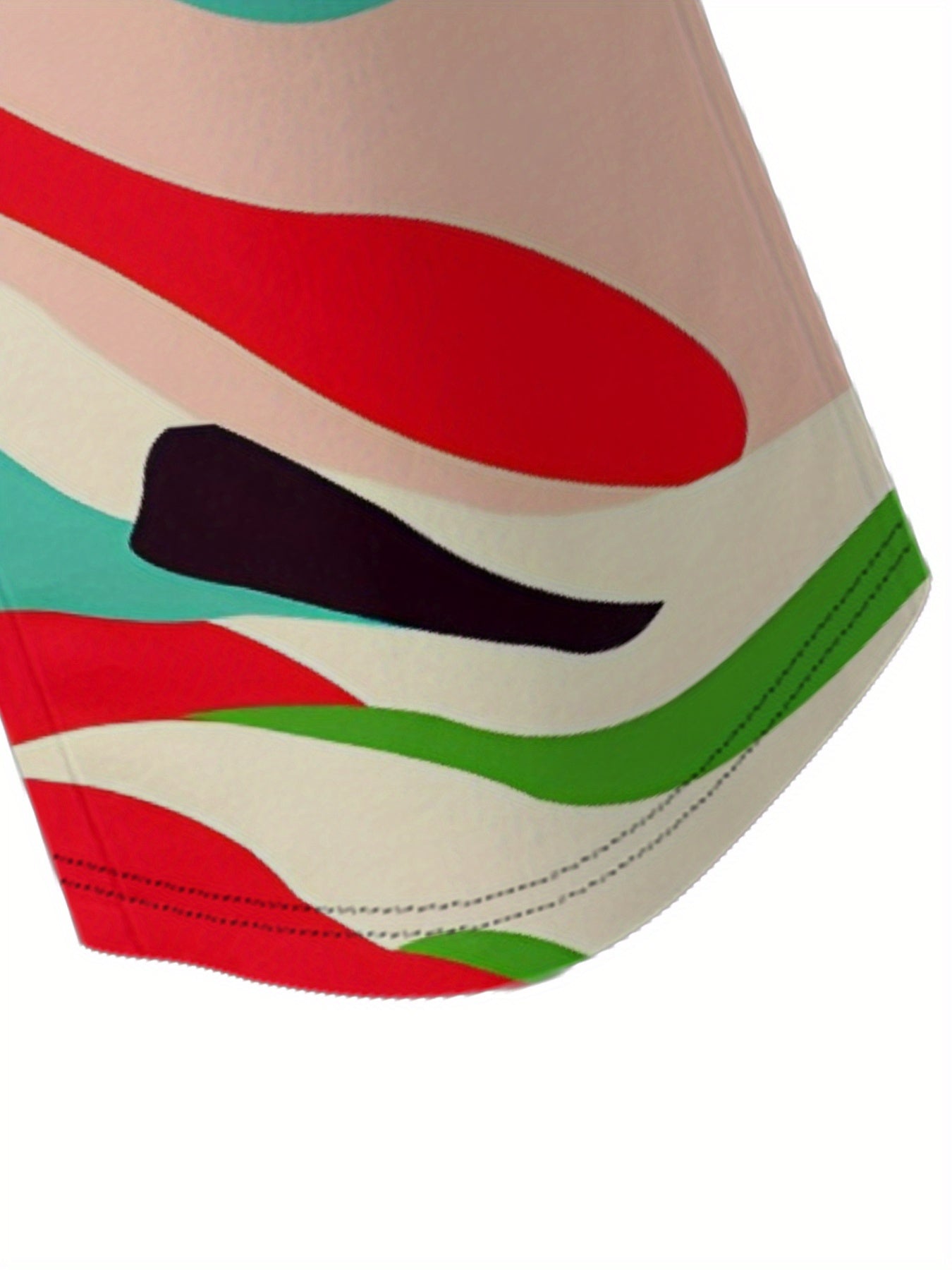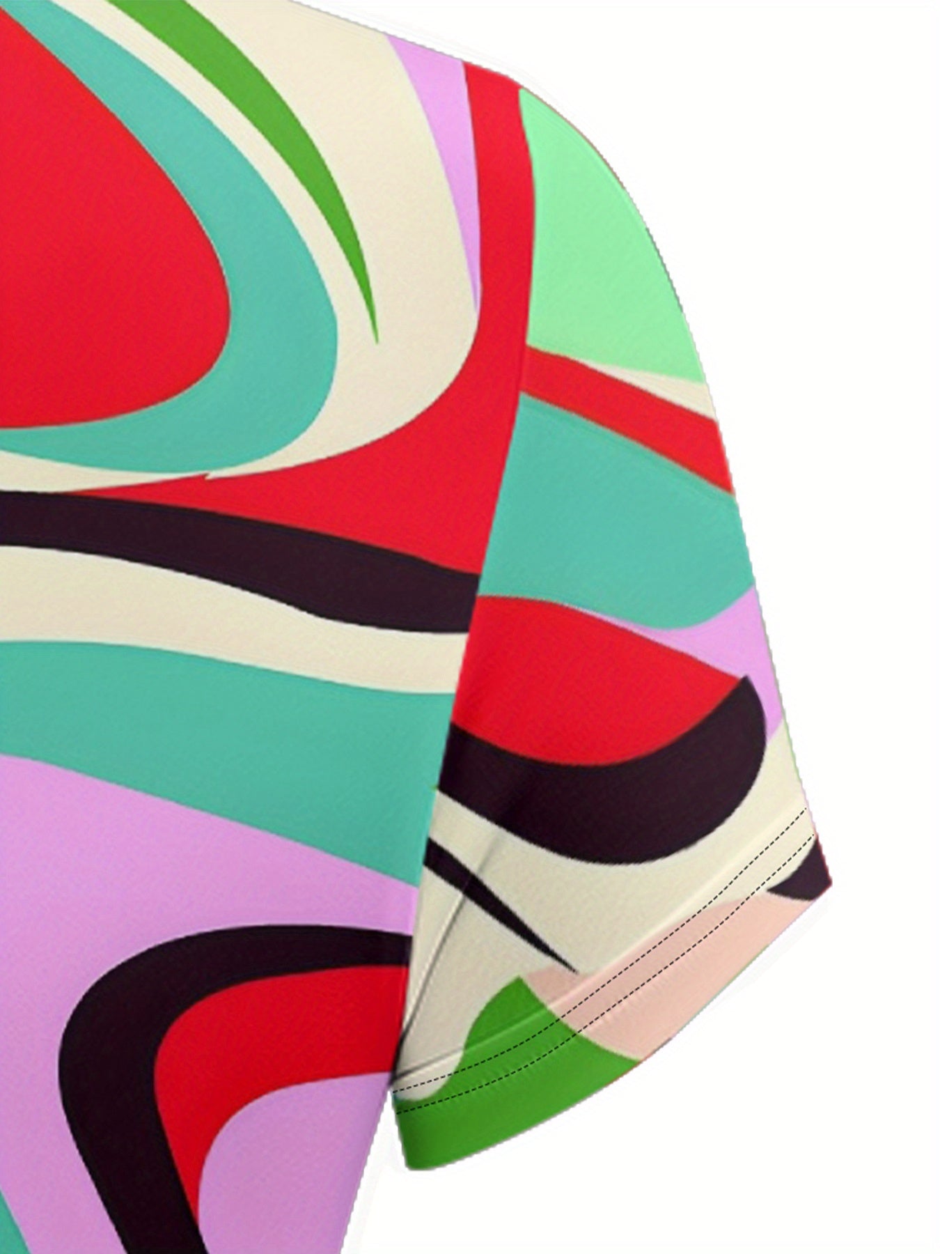 Bright Wave Print Short Sleeve Crop Top & Wide-Leg Pants Set