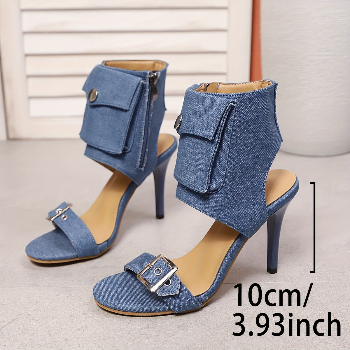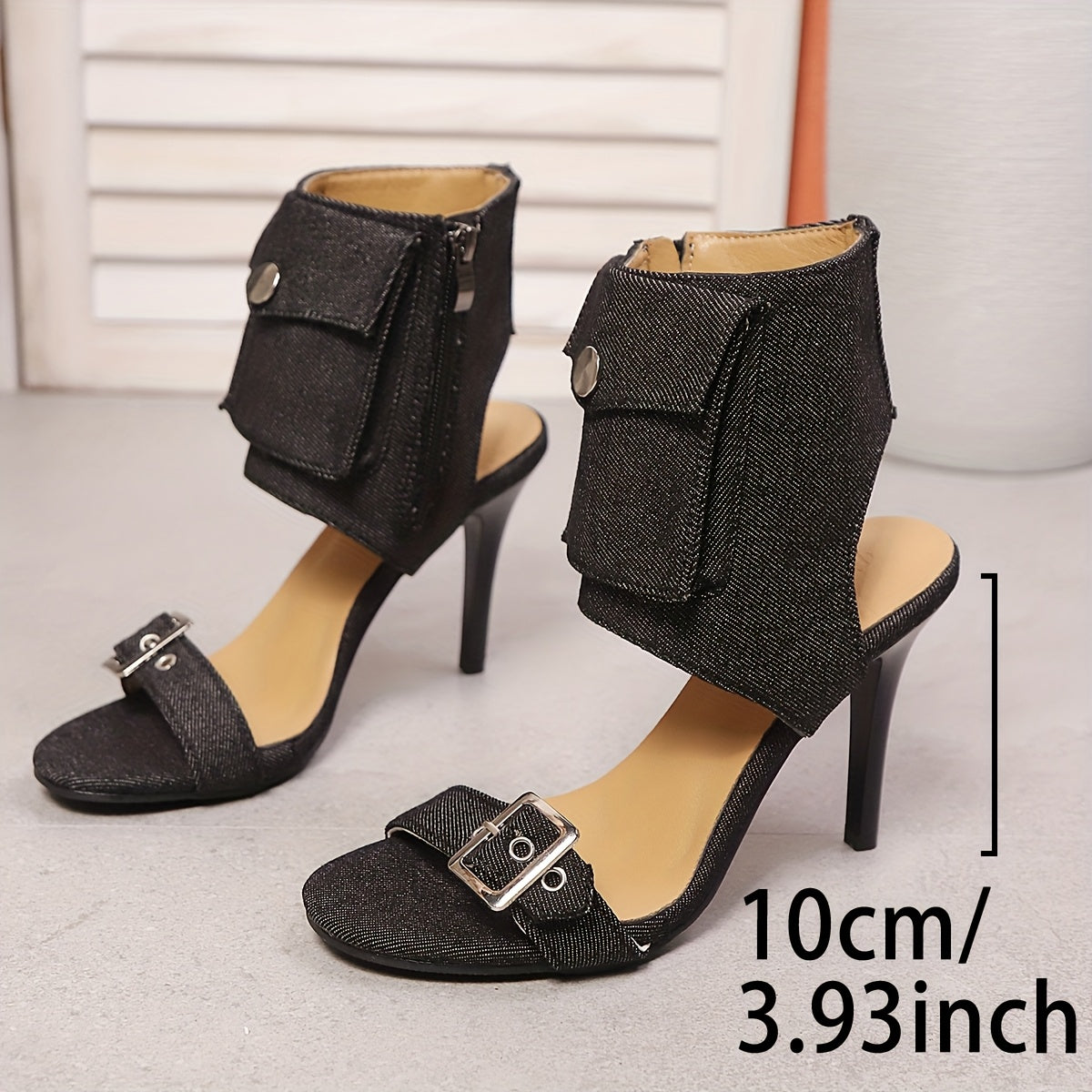 Denim Fabric Ankle Buckle Stiletto Sandals