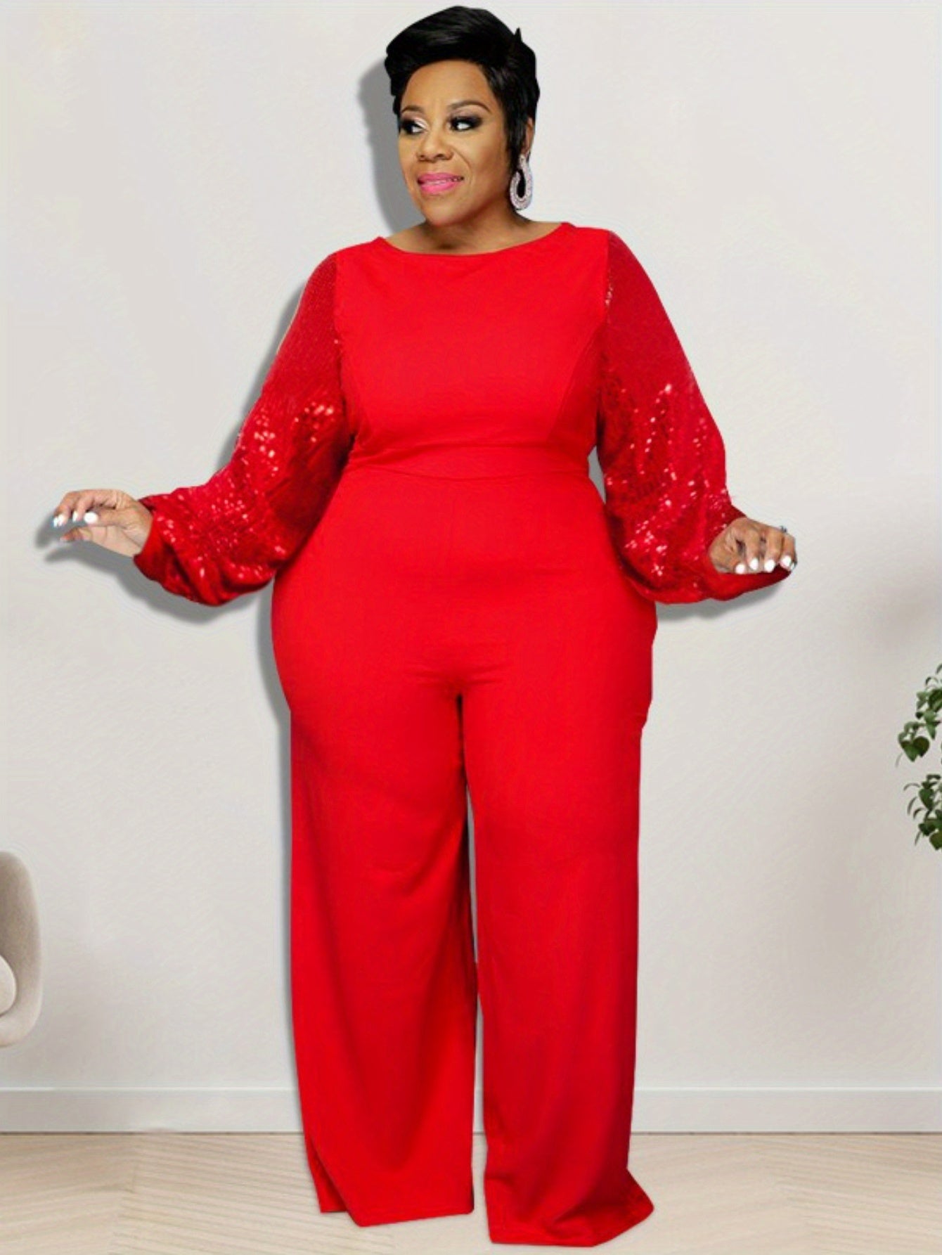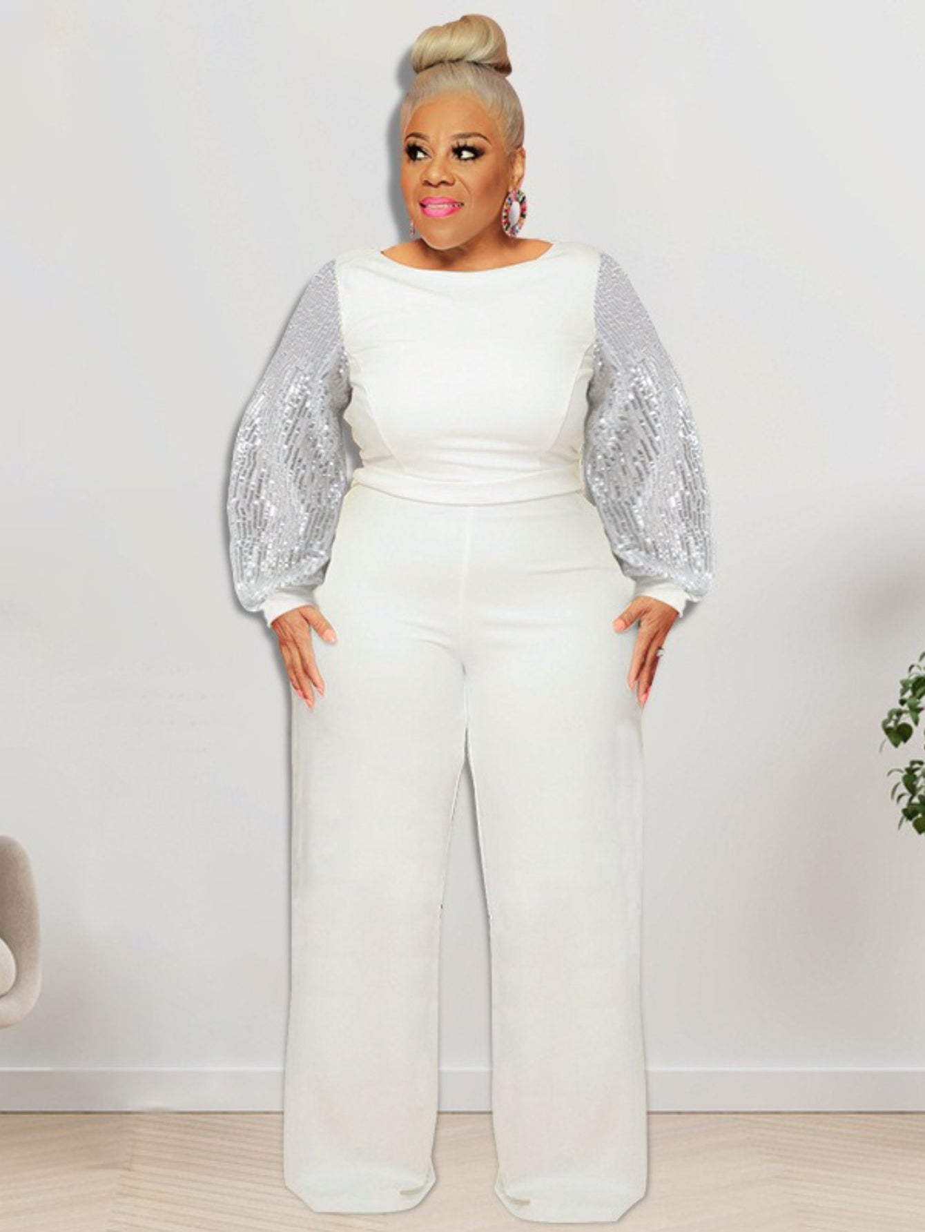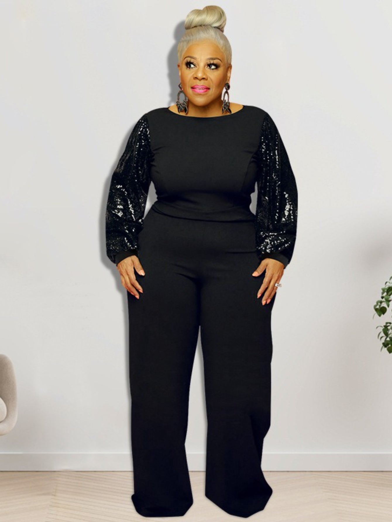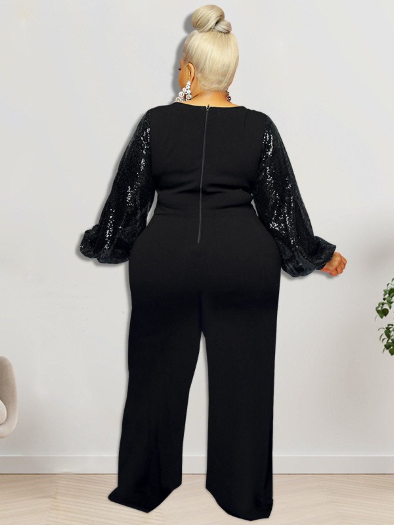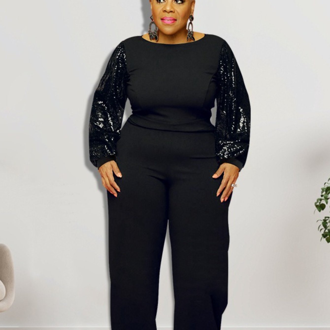Elegant Sequin Sleeve Jumpsuit – Black One-Piece for Evening Glam