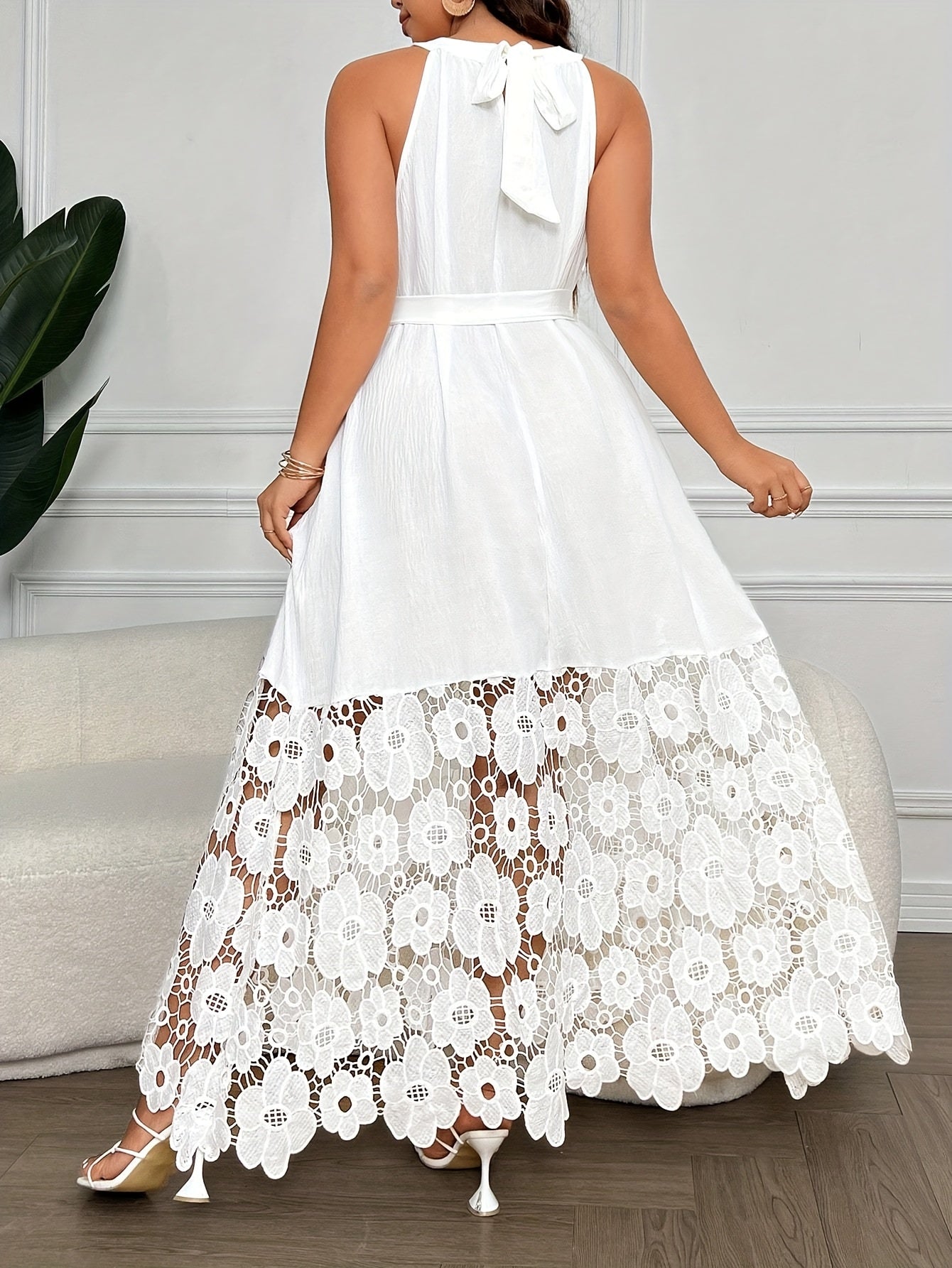 Elegant White Lace Maxi Dress – Sleeveless & Flowy for Bridal or Summer Events
