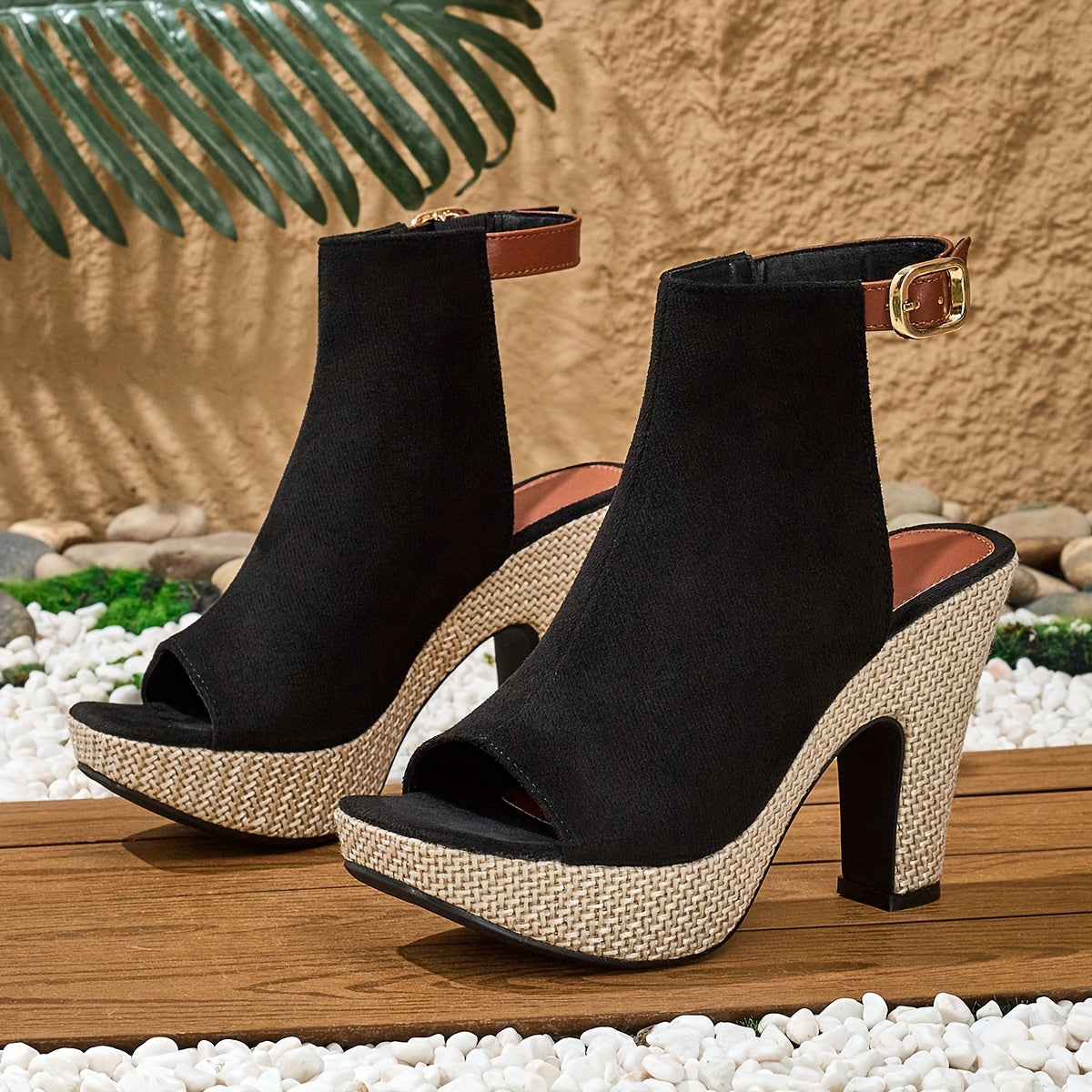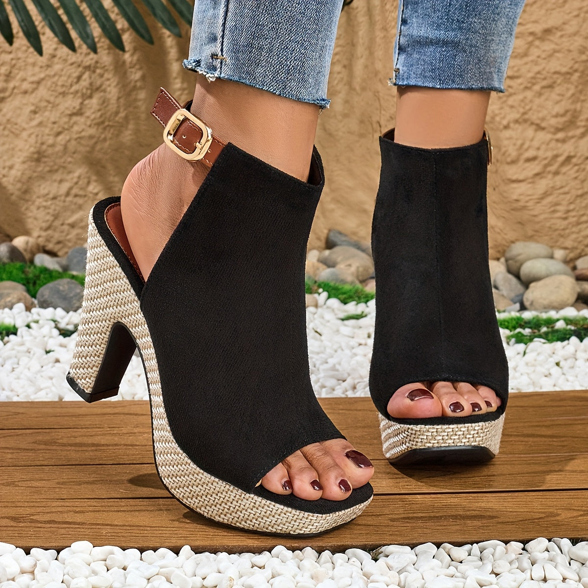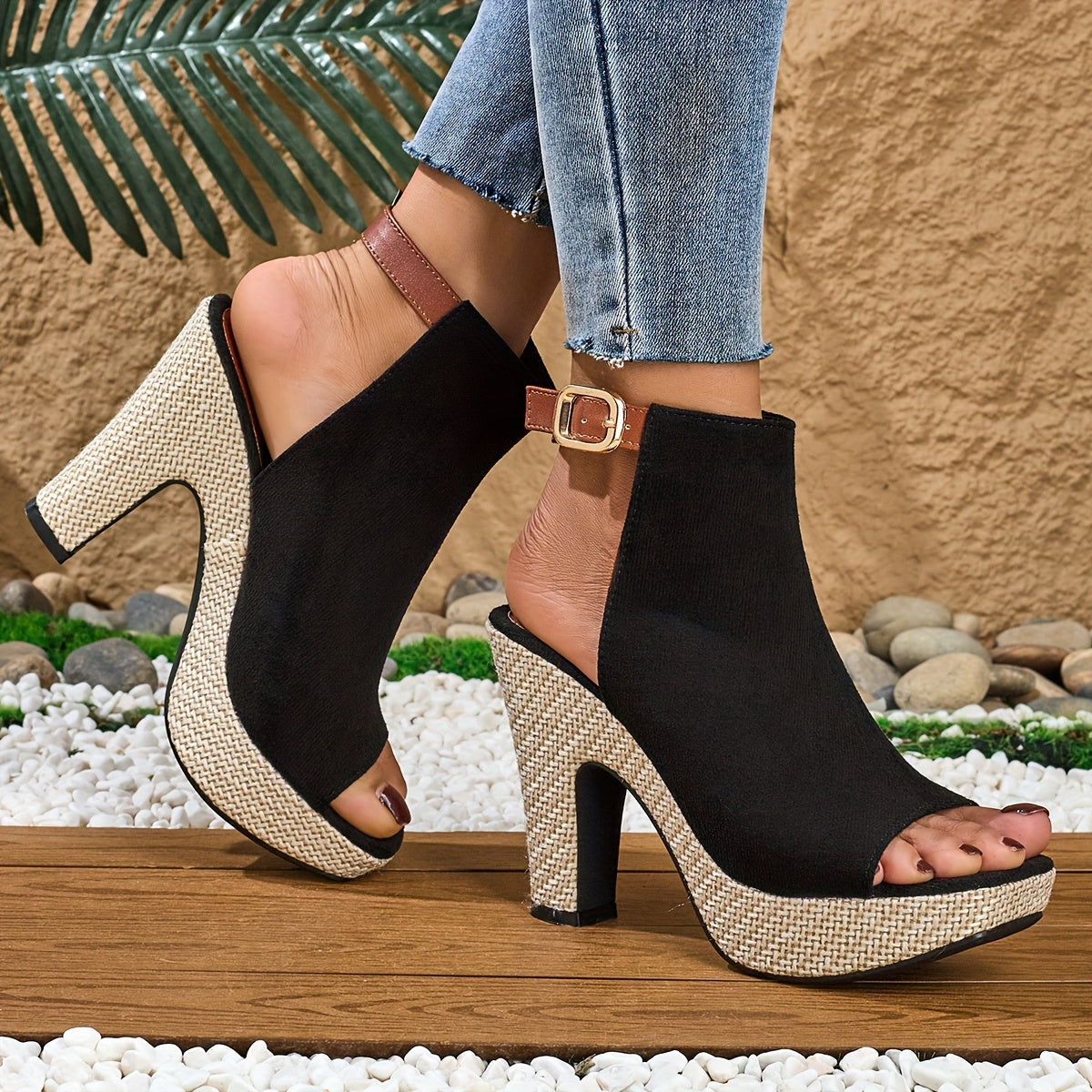 Boho High Heel Sandals – Square Toe, Buckle Detail, Elegant Party & Casual Shoes for Women