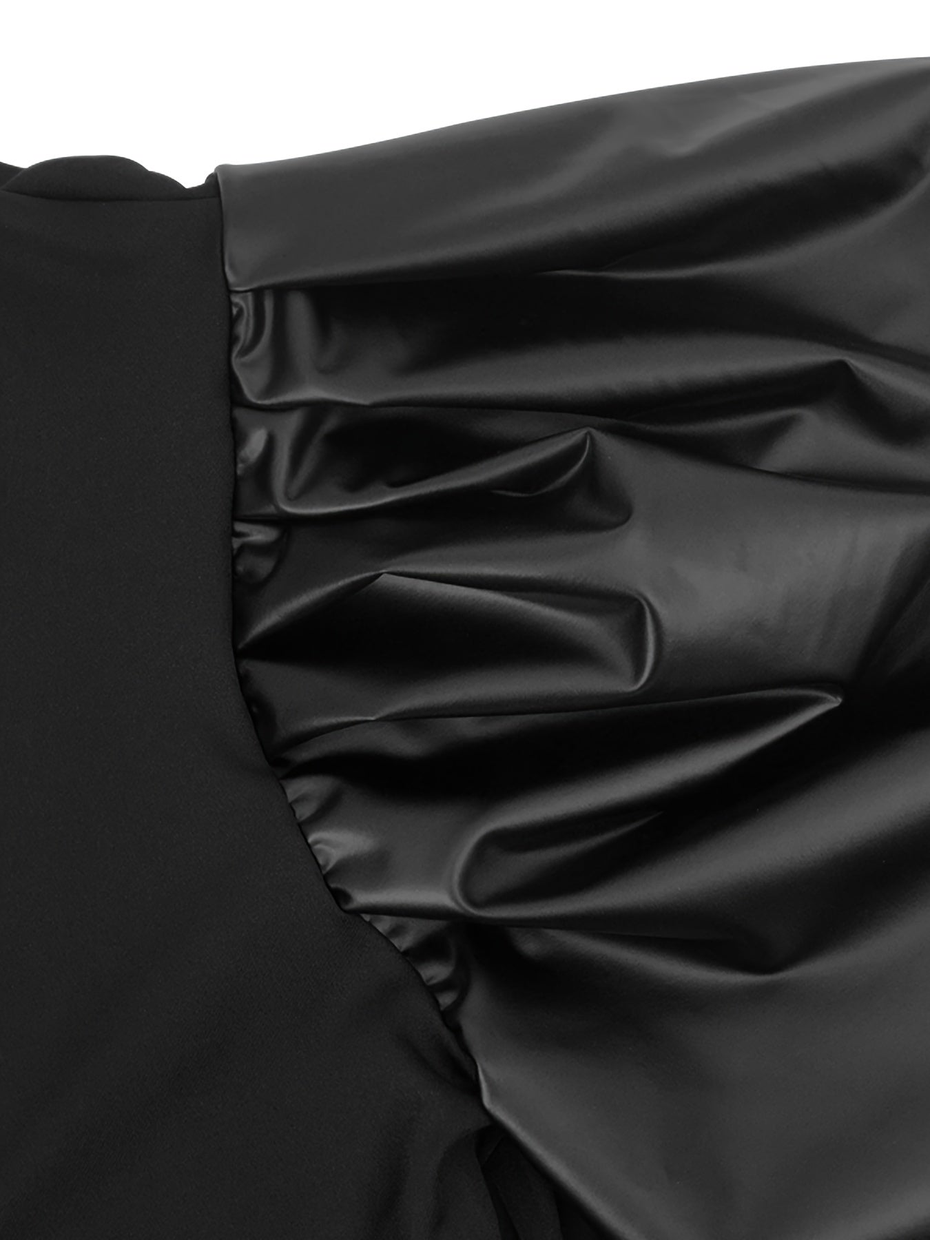 Faux Leather Knit Top & Drawstring Pants Set – Chic Two-Piece Co-ord Outfit