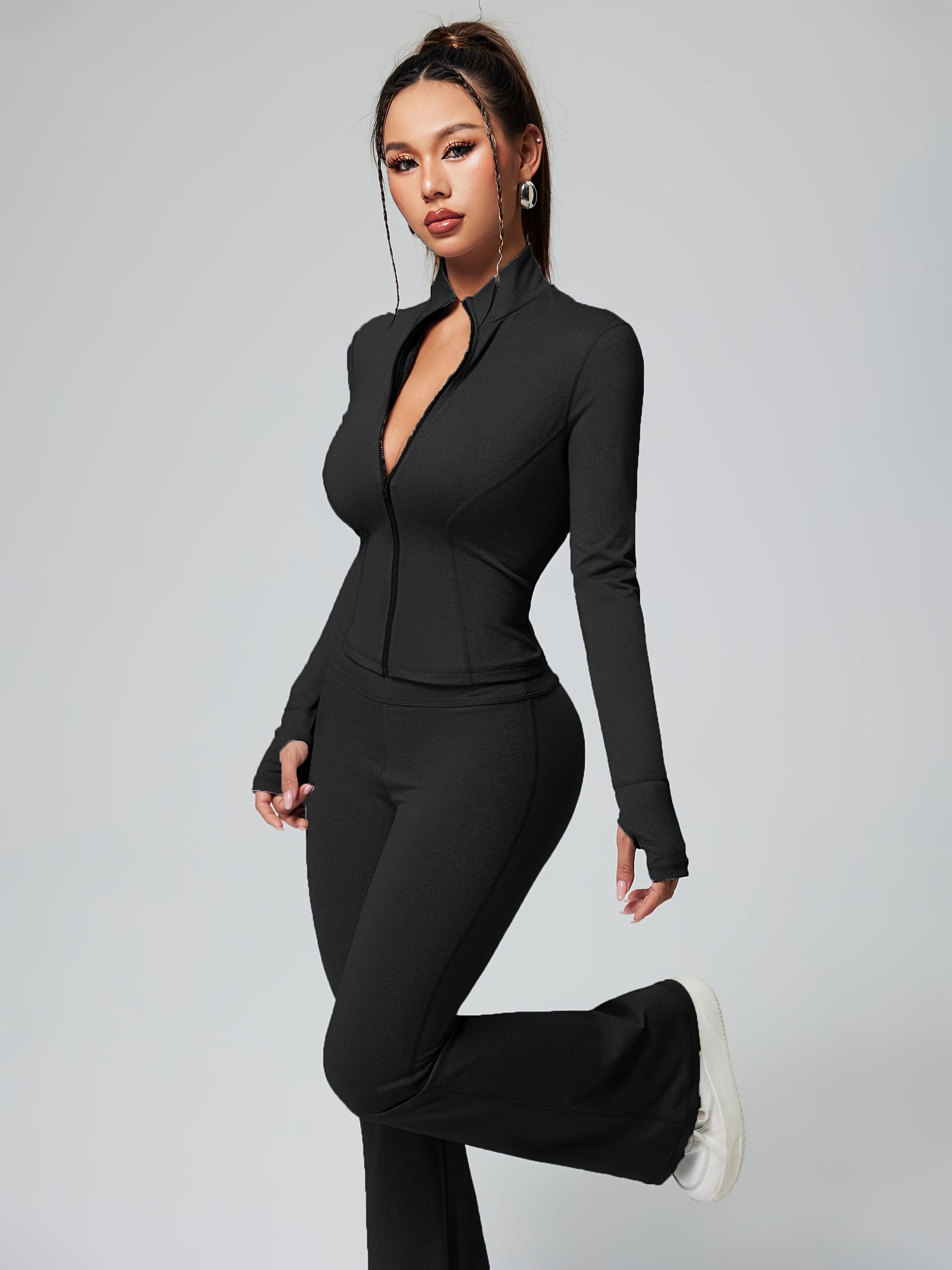 Fitted Sports Jacket & High-Waisted Flared Pants Set