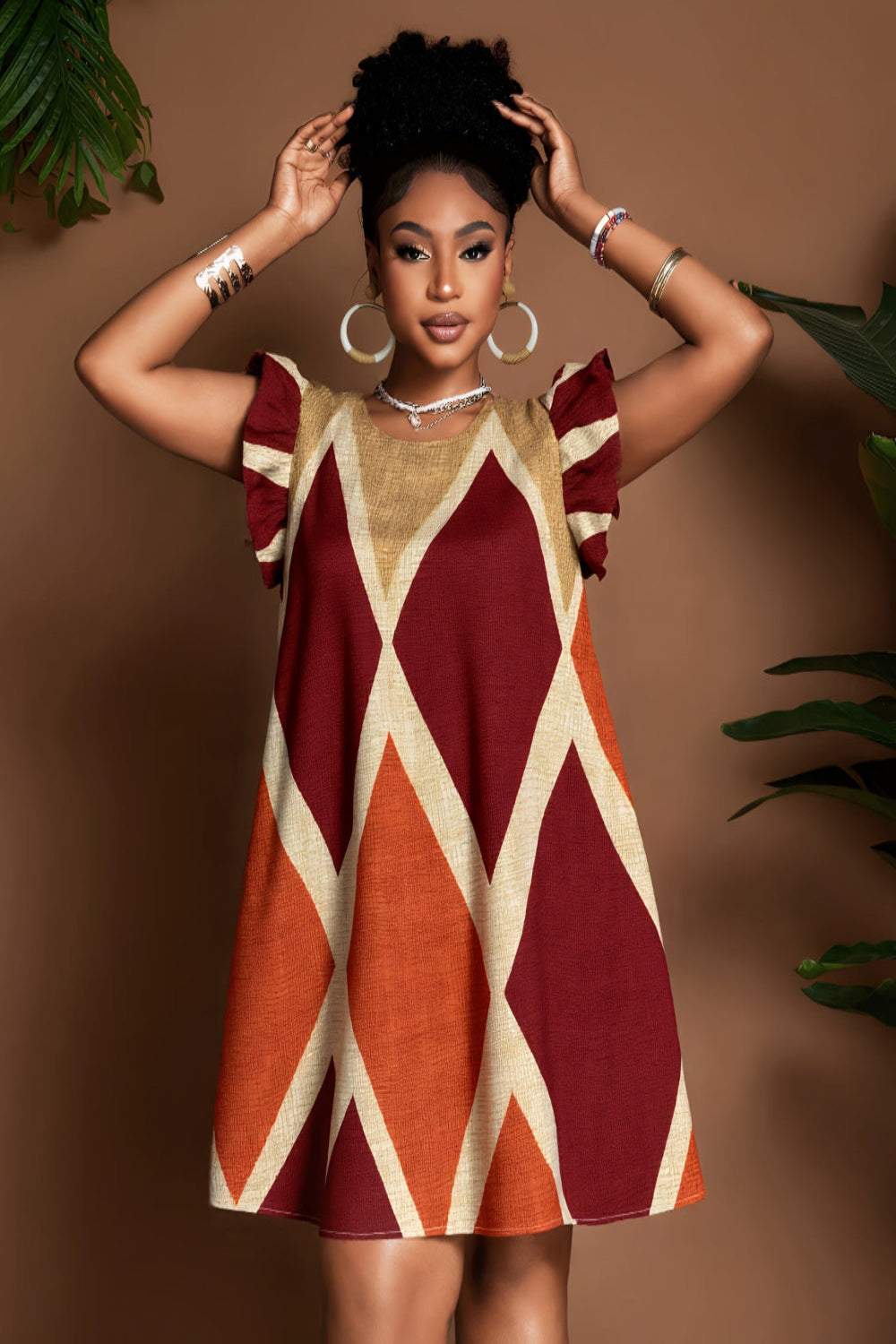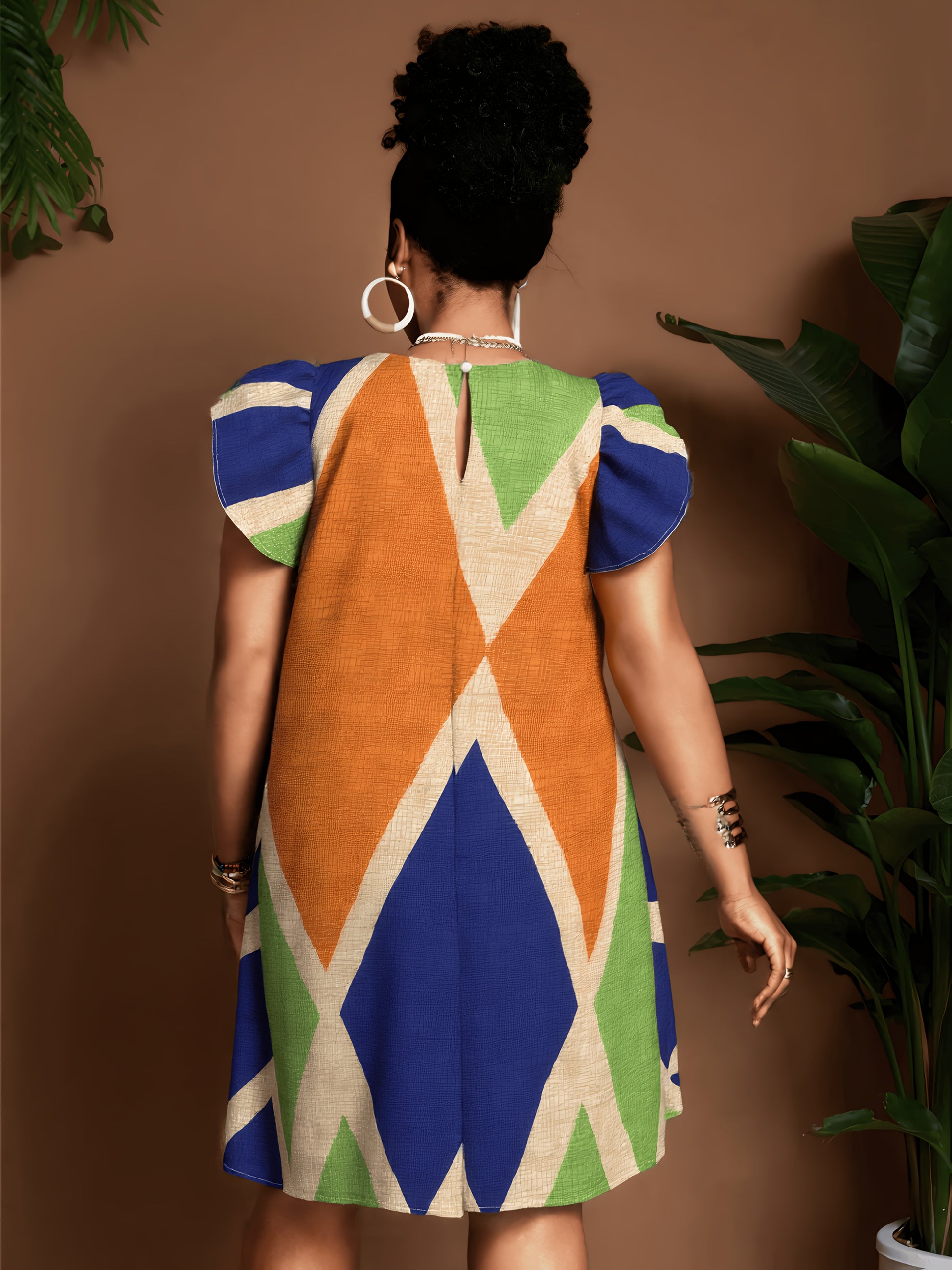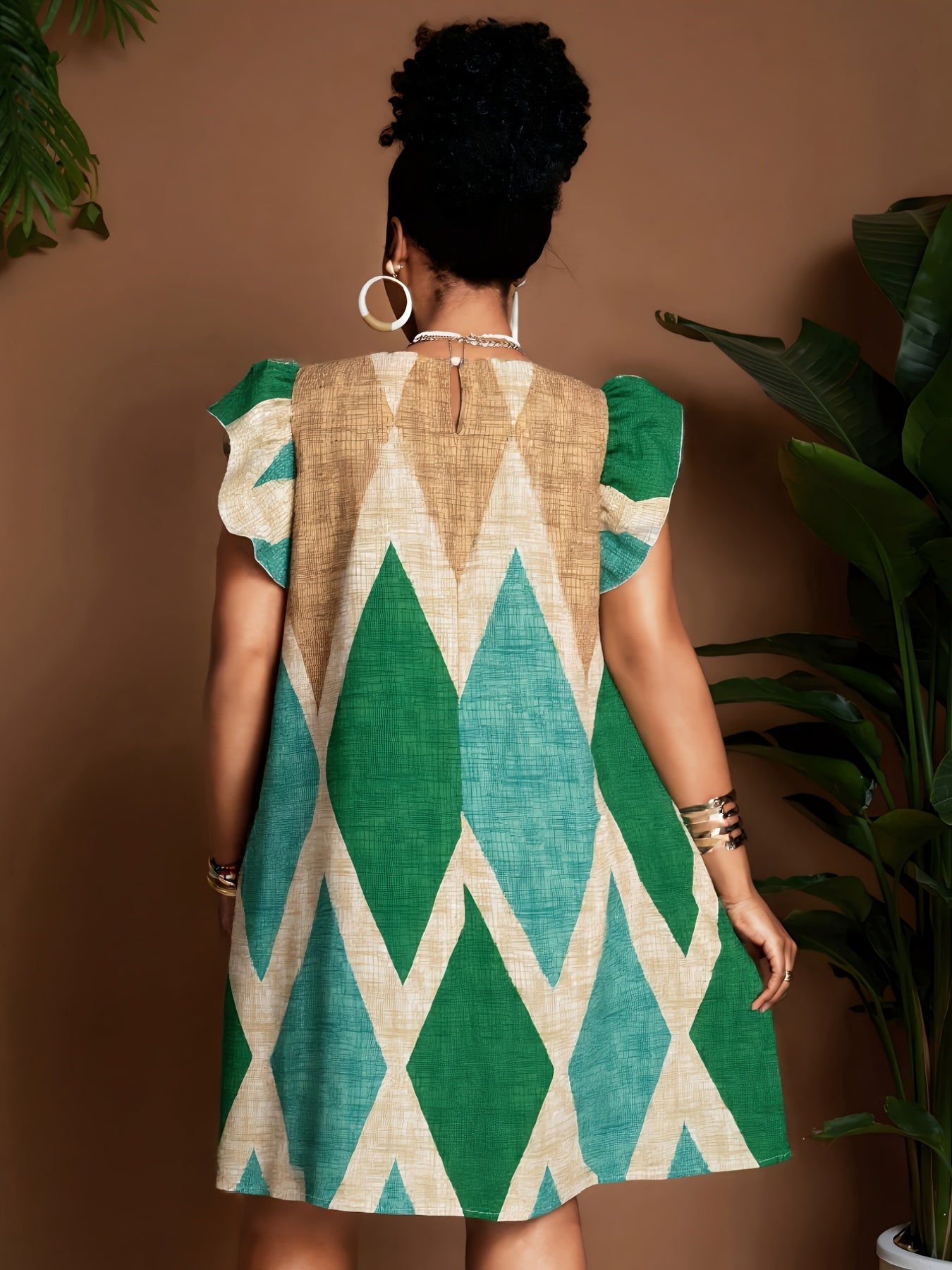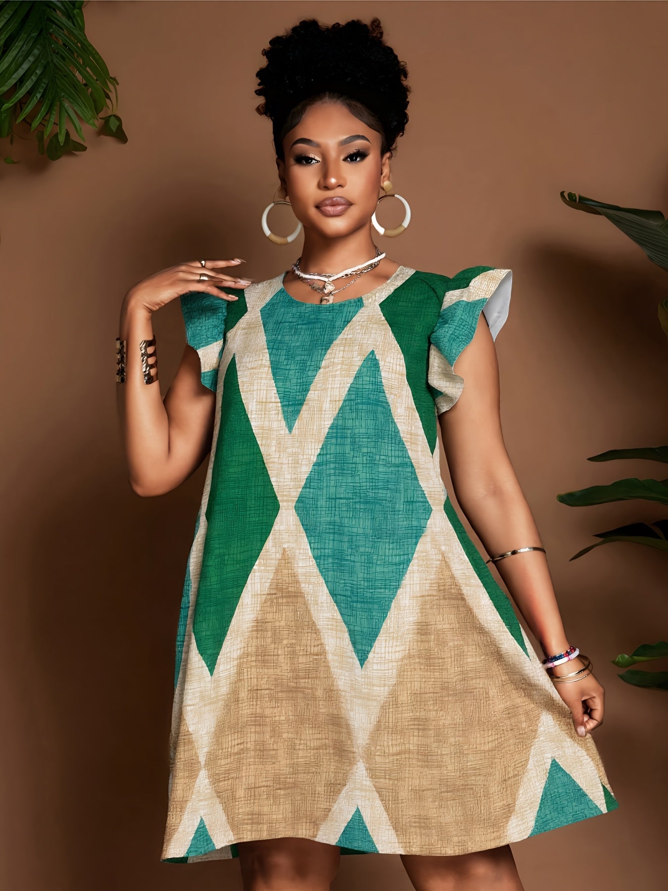 Geometric Ruffle Sleeve A-Line Mini Dress – Bold, Flowy & Flirty