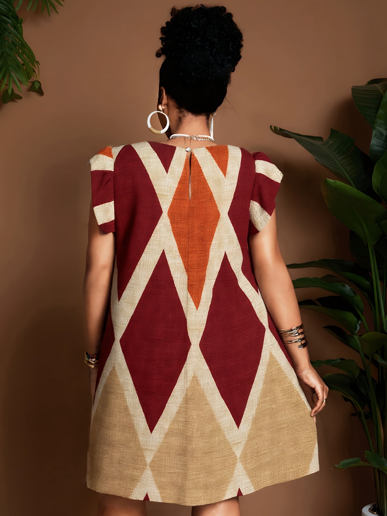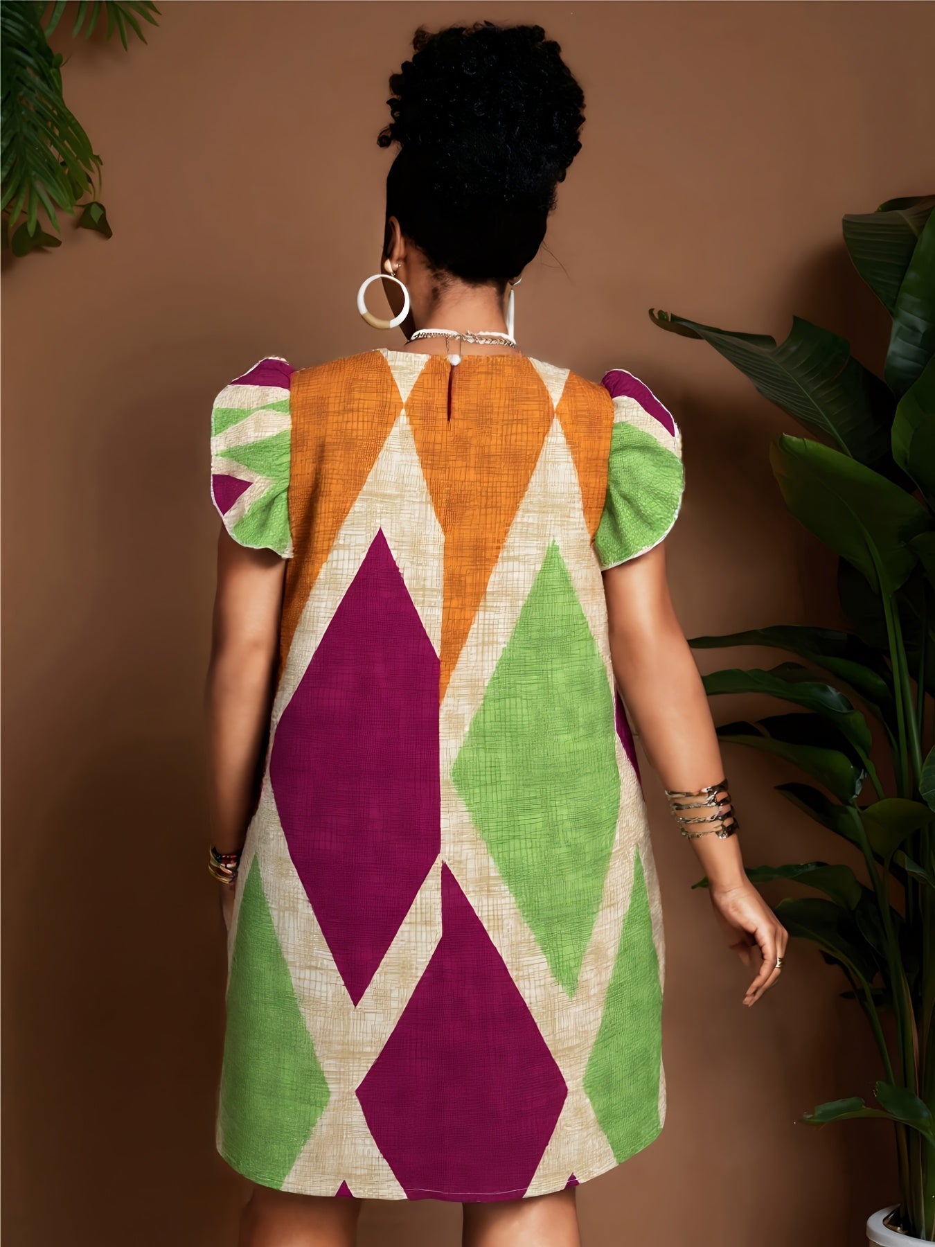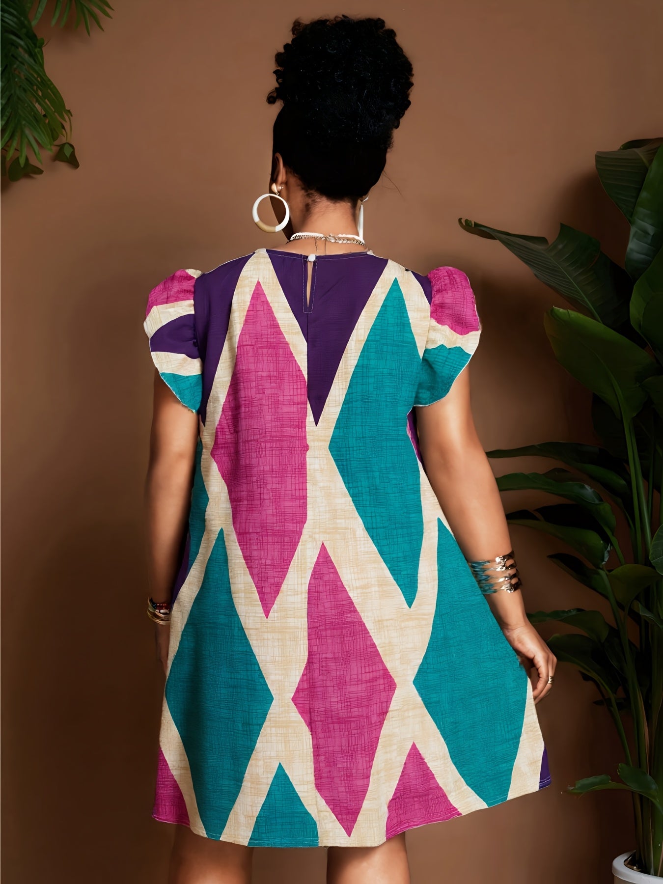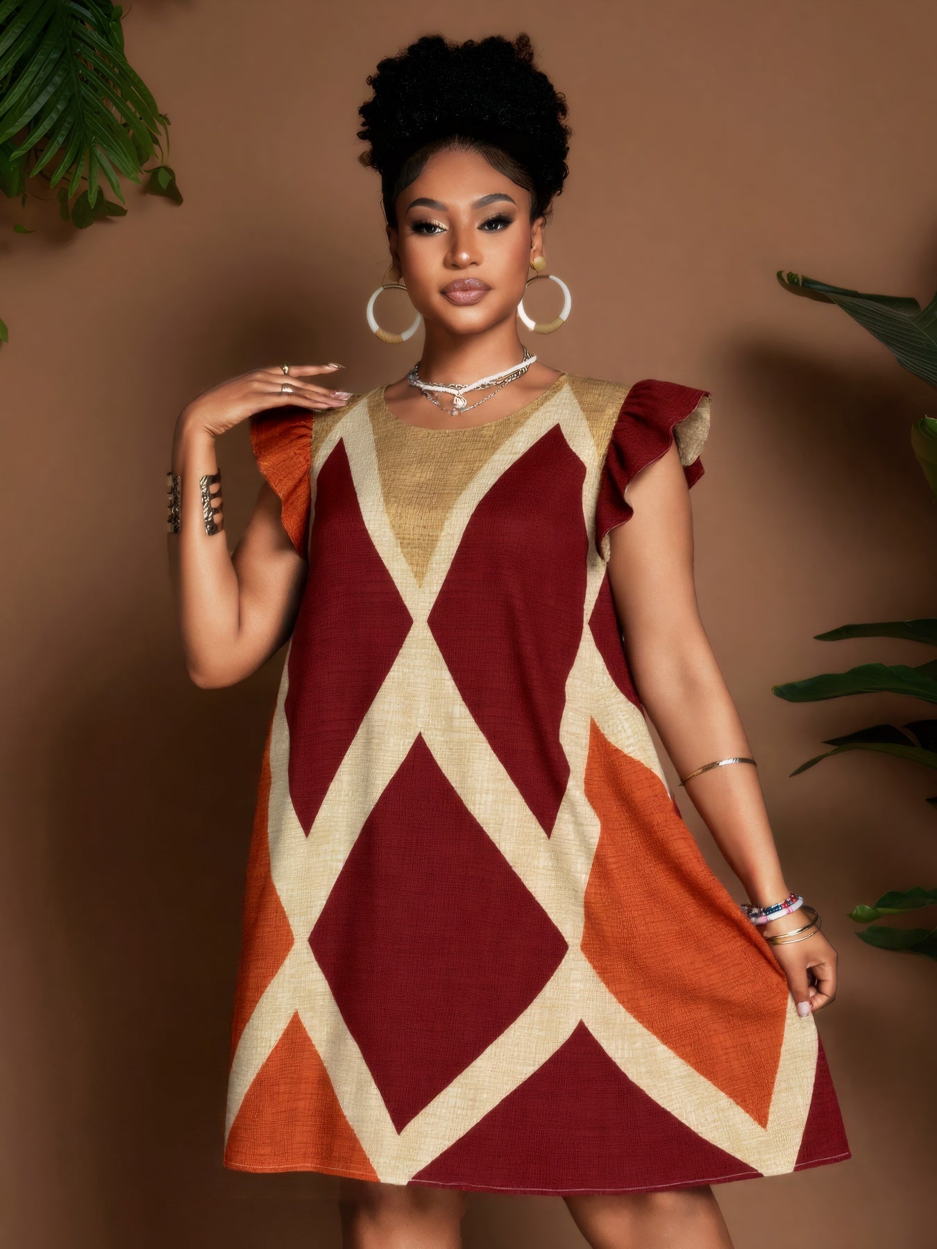 Geometric Ruffle Sleeve A-Line Mini Dress – Bold, Flowy & Flirty