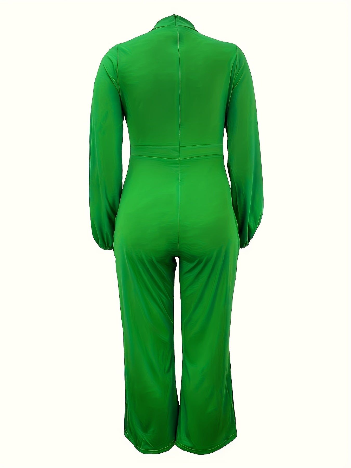 Green High-Neck Jumpsuit with Drawstring Waist – Chic Wide-Leg One-Piece Outfit