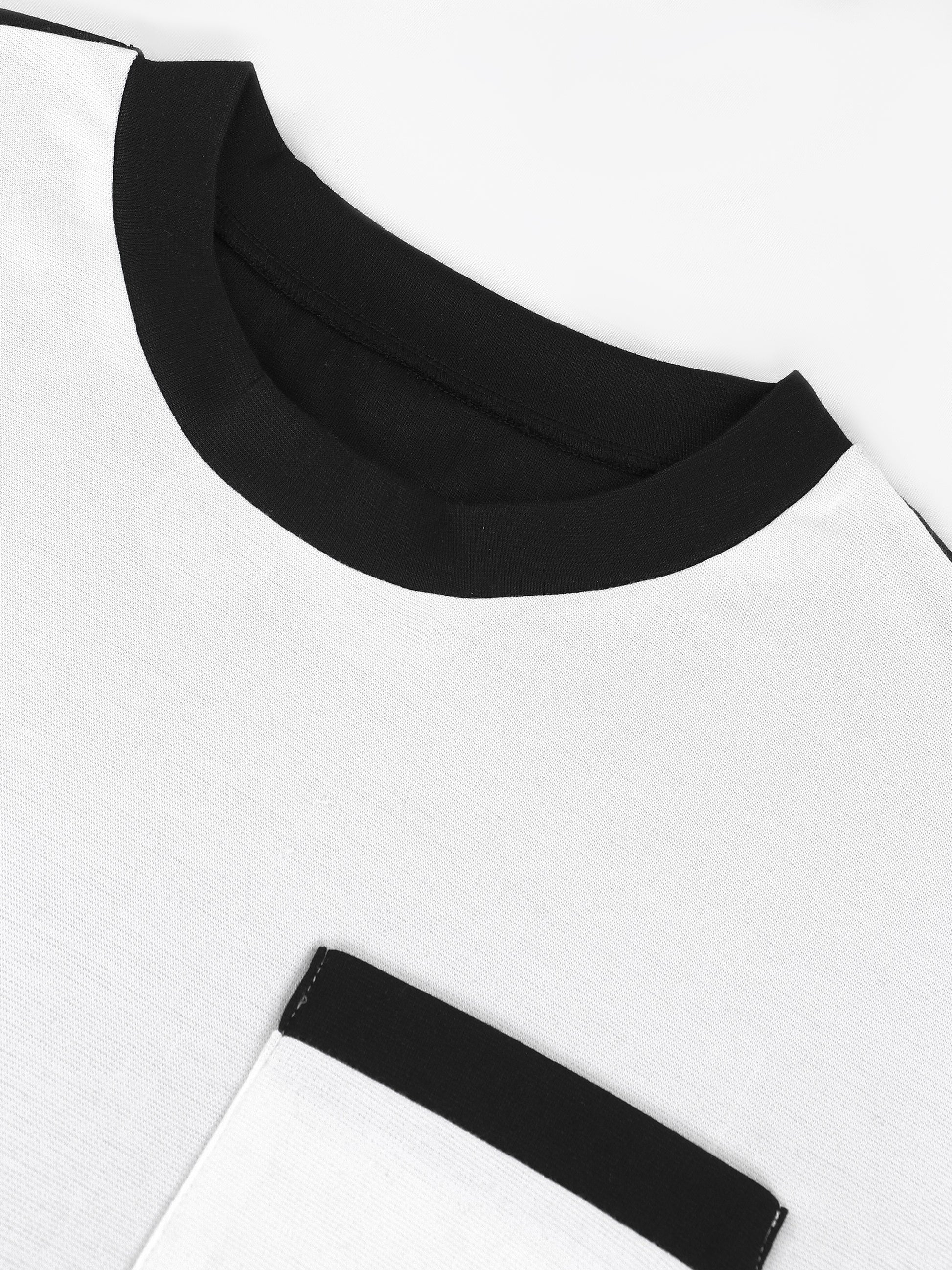 Grey & Black Color Block T-Shirt with Patch Pocket & Loose Fit Pants Set