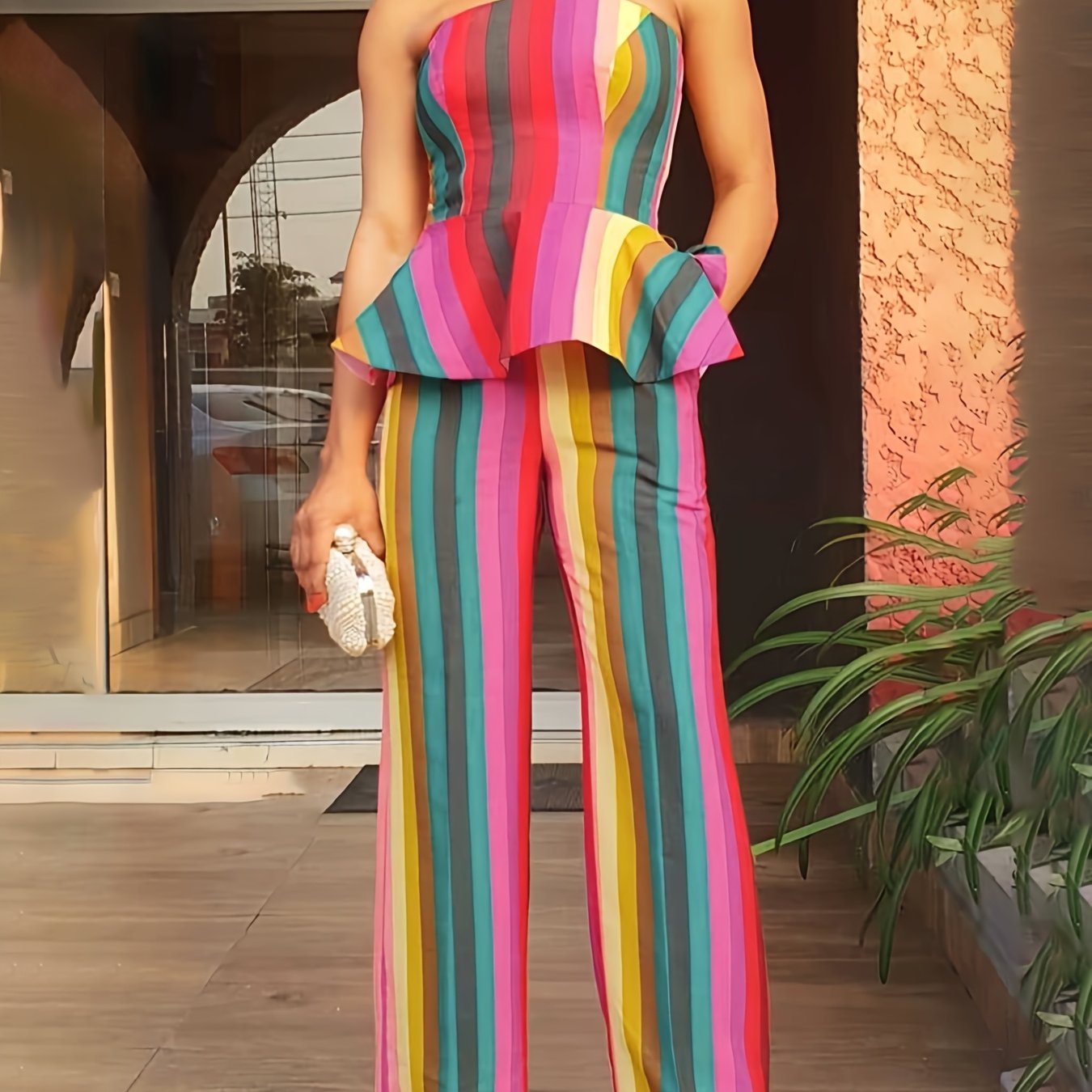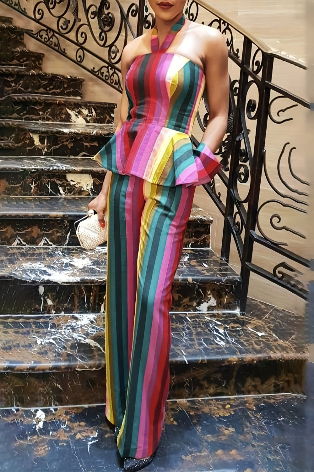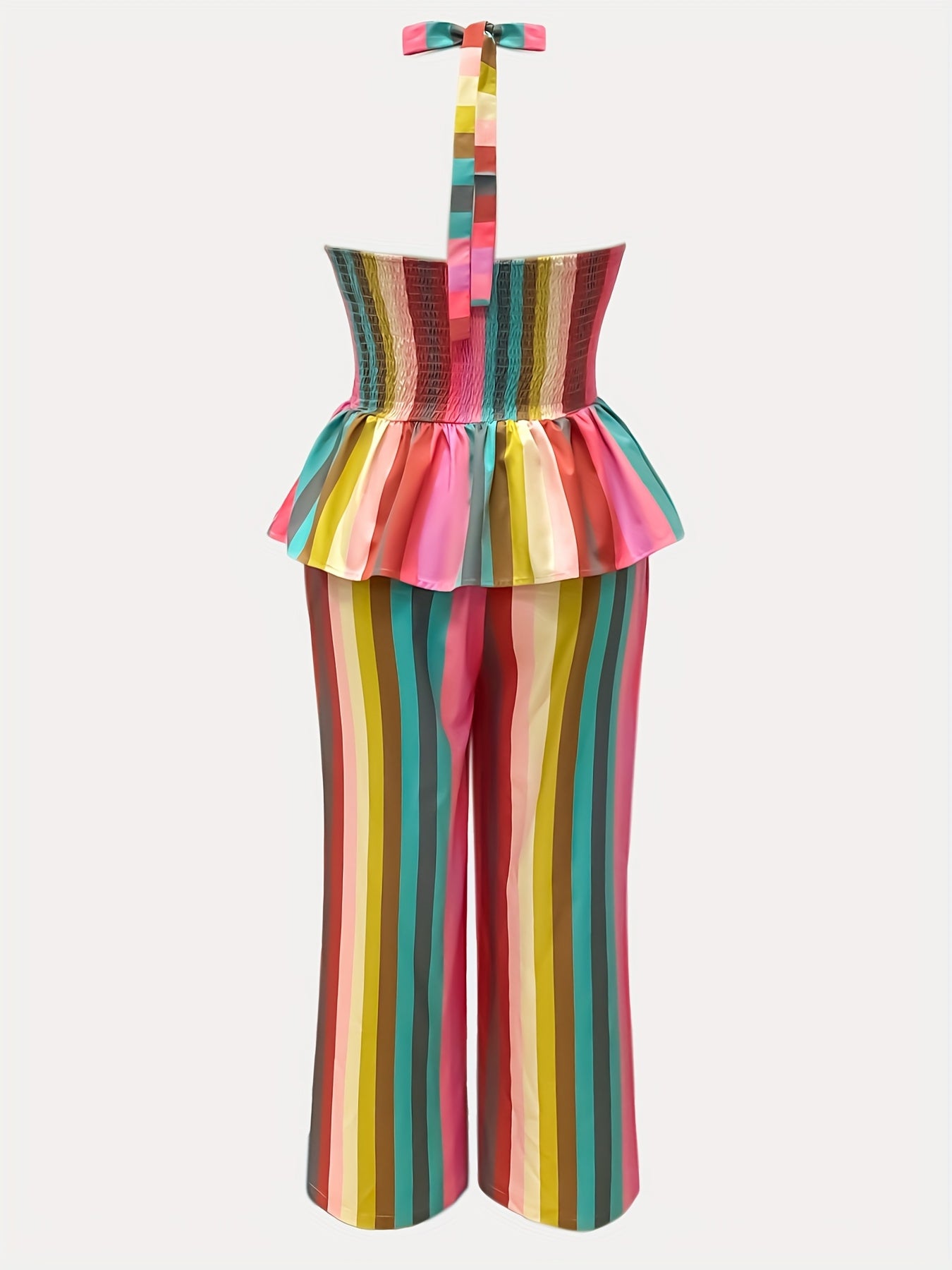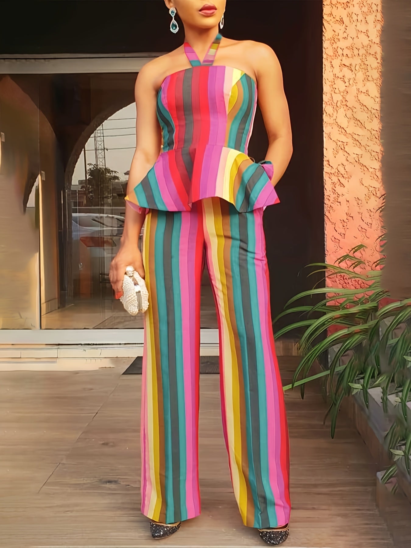 Chic Halter Strap Open Shoulder Top & Straight-Leg Trouser Set – Elegant & Flattering 2-Piece Outfit