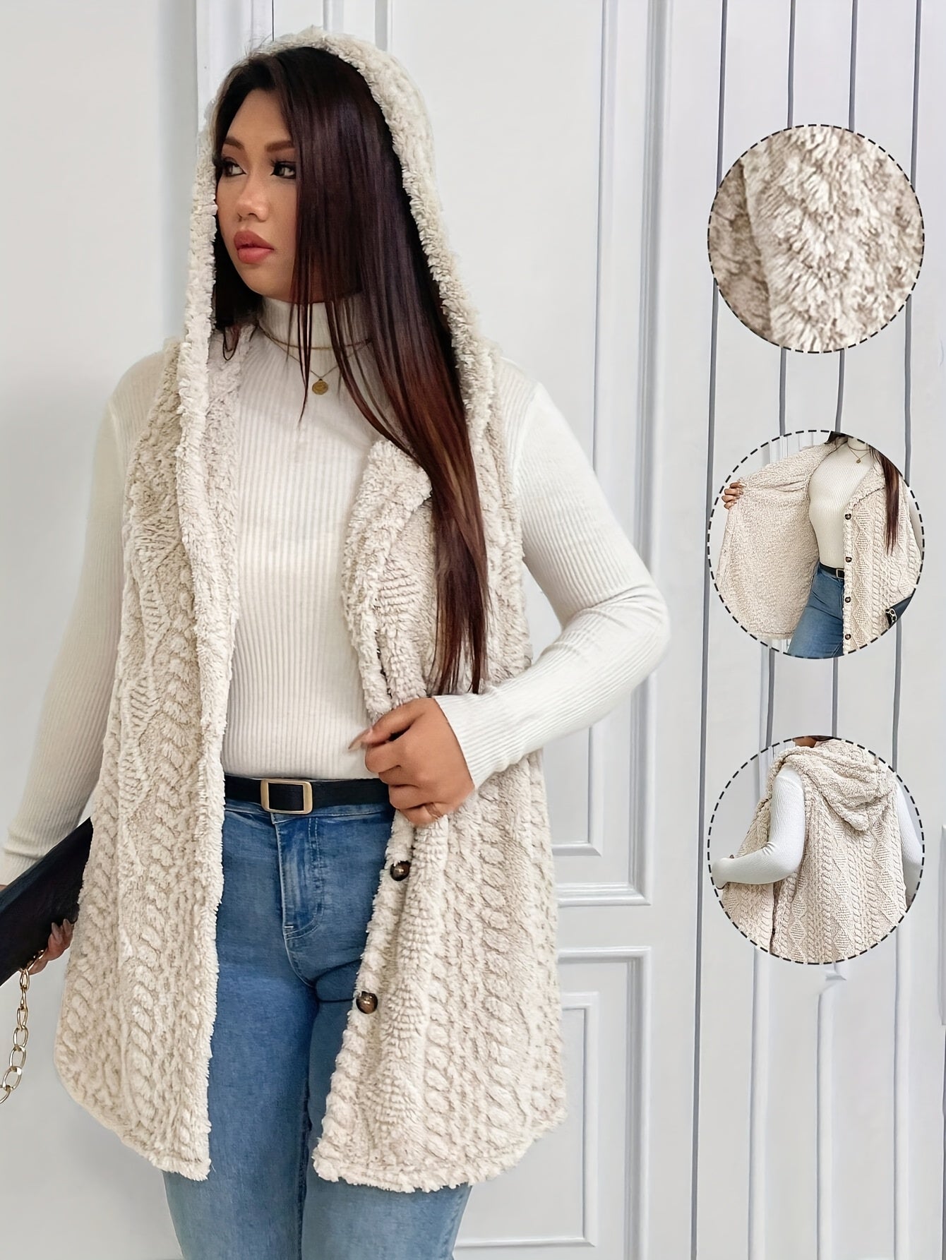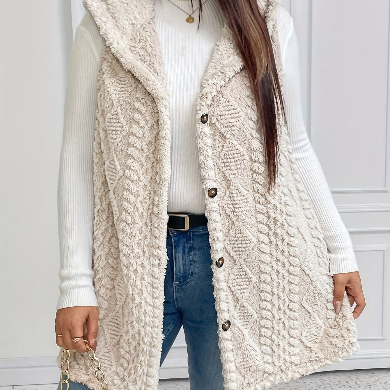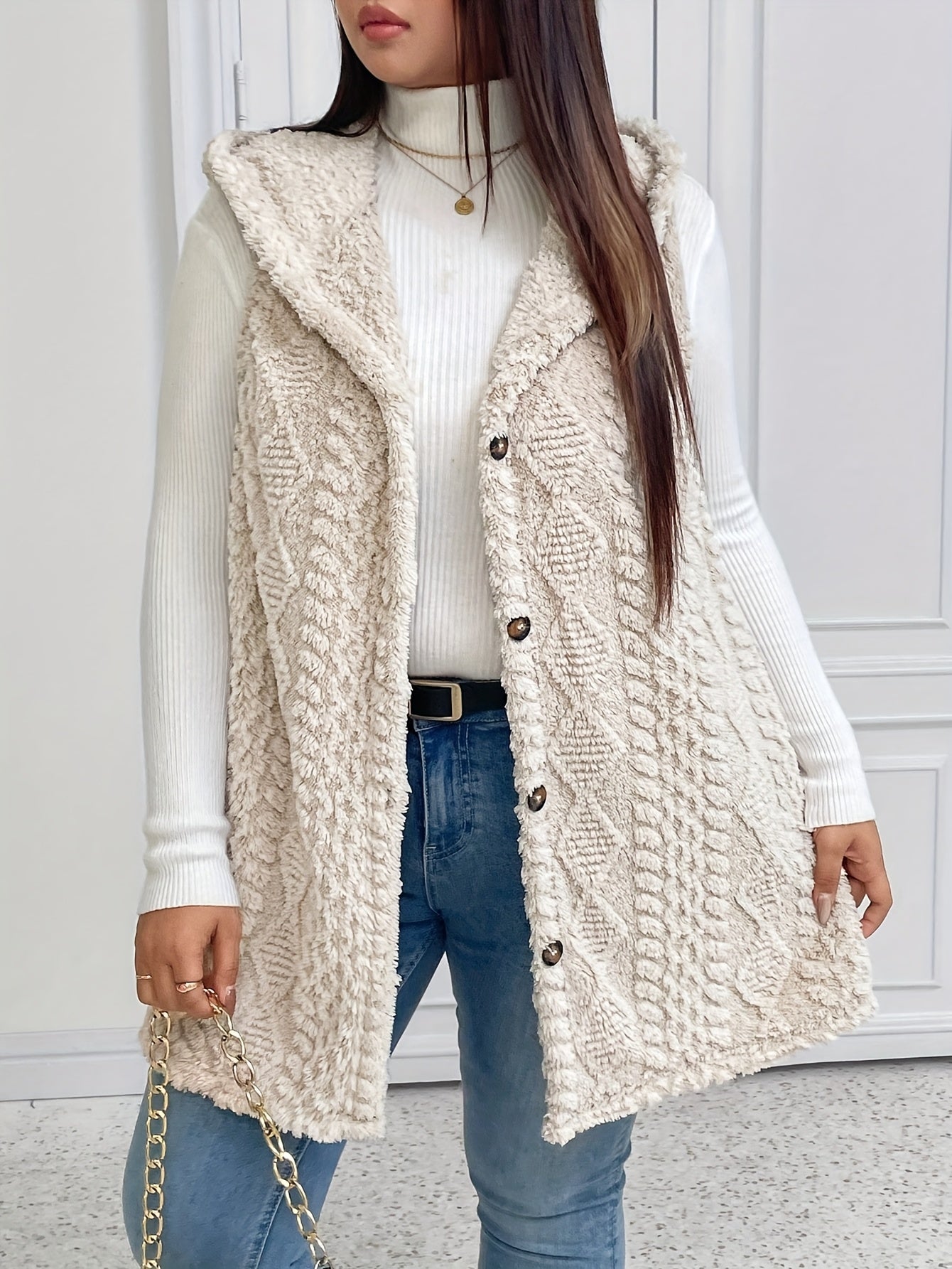 Hooded Fleece-Lined Faux Button Sleeveless Vest