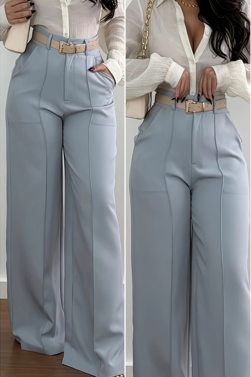 Light Blue Straight-Leg Trousers with Pockets – Chic, Polished & Versatile