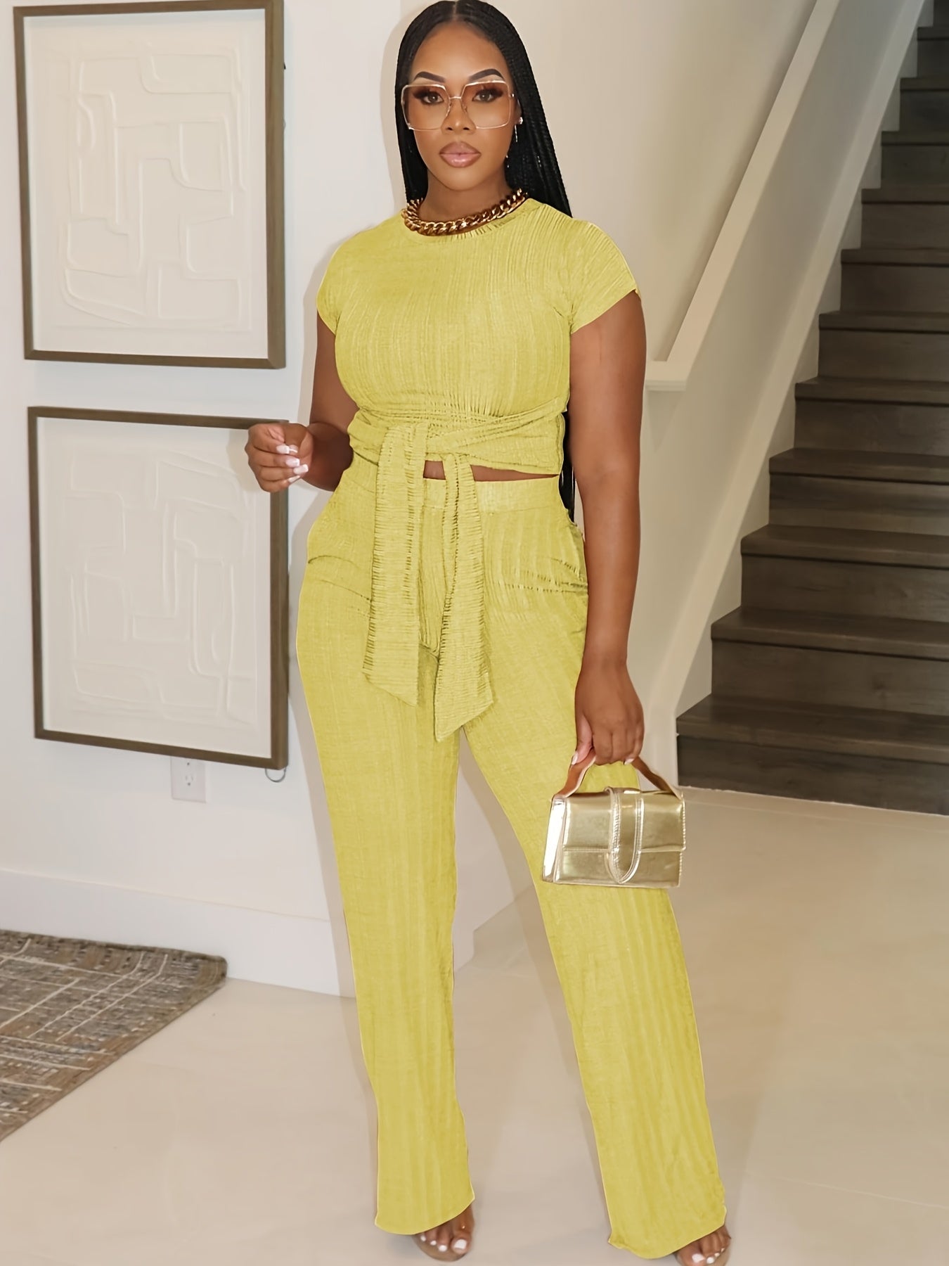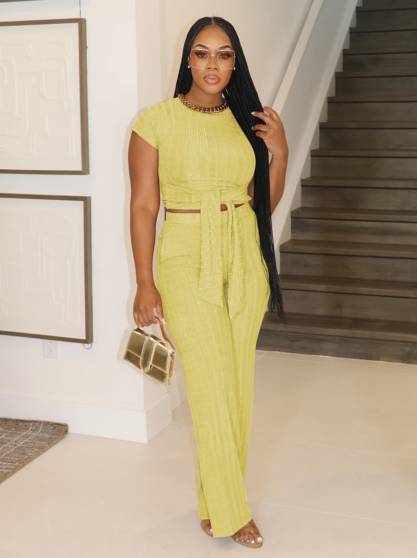 Belted Crop Top & Wide Leg Lounge Set