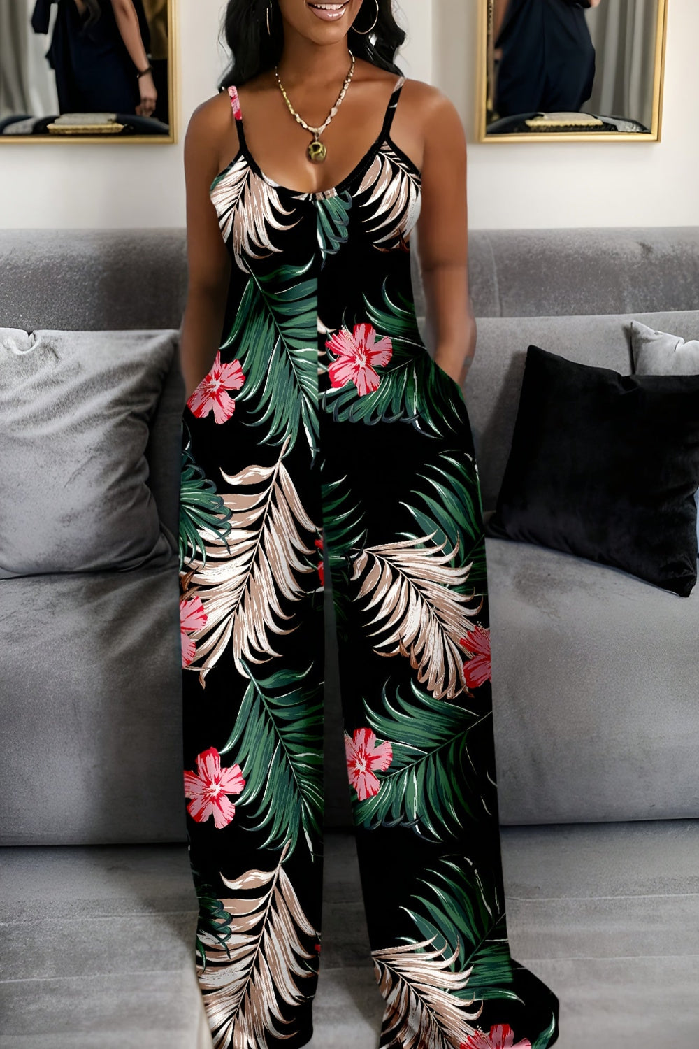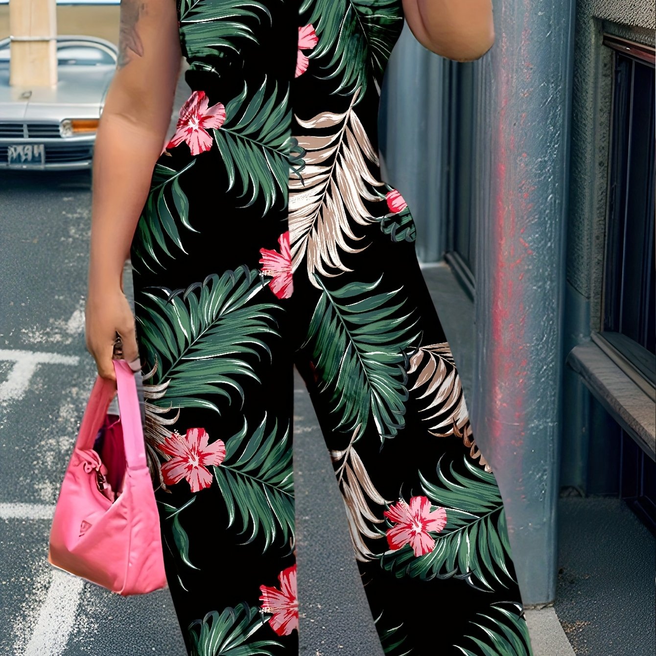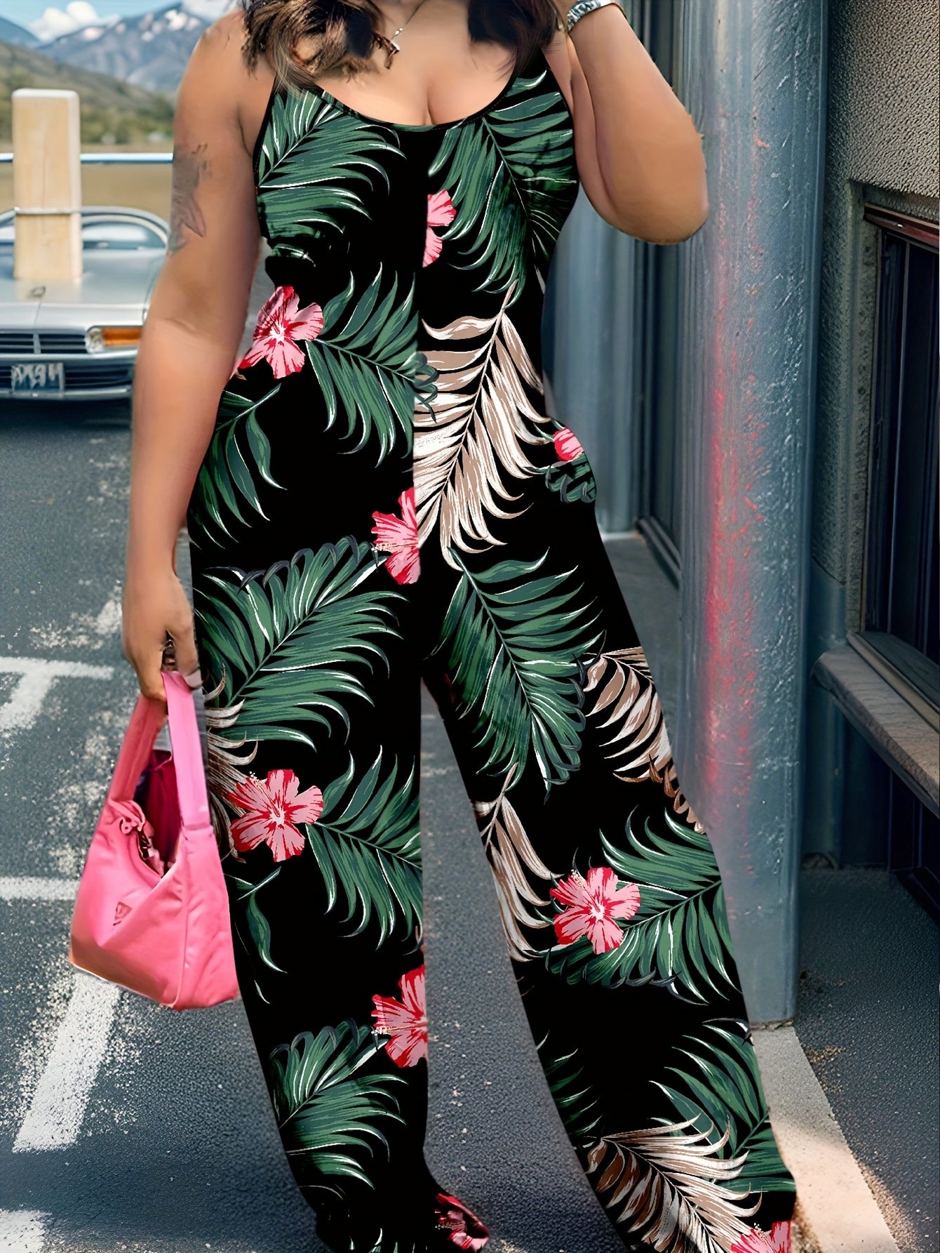 Tropical Palm Leaf Wide-Leg Jumpsuit – Sleeveless, Lightweight & Effortless