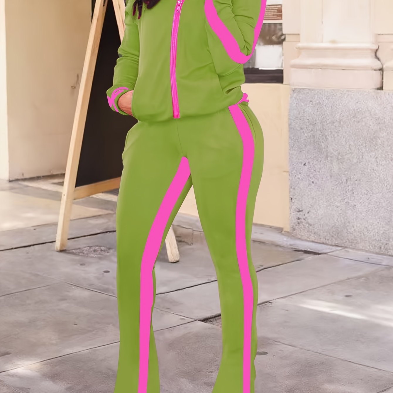 Women’s Pink & Green Zip-Up Jacket + Striped Bell Pants Set