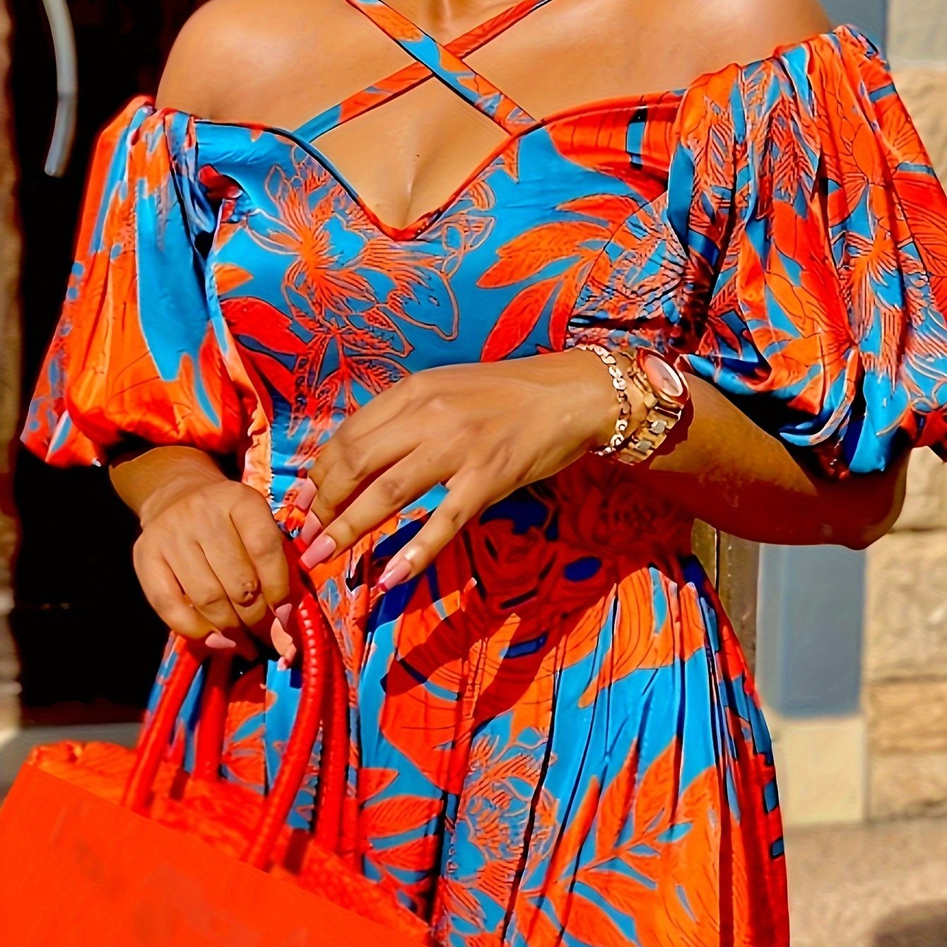 - Collar Style: Criss cross neck