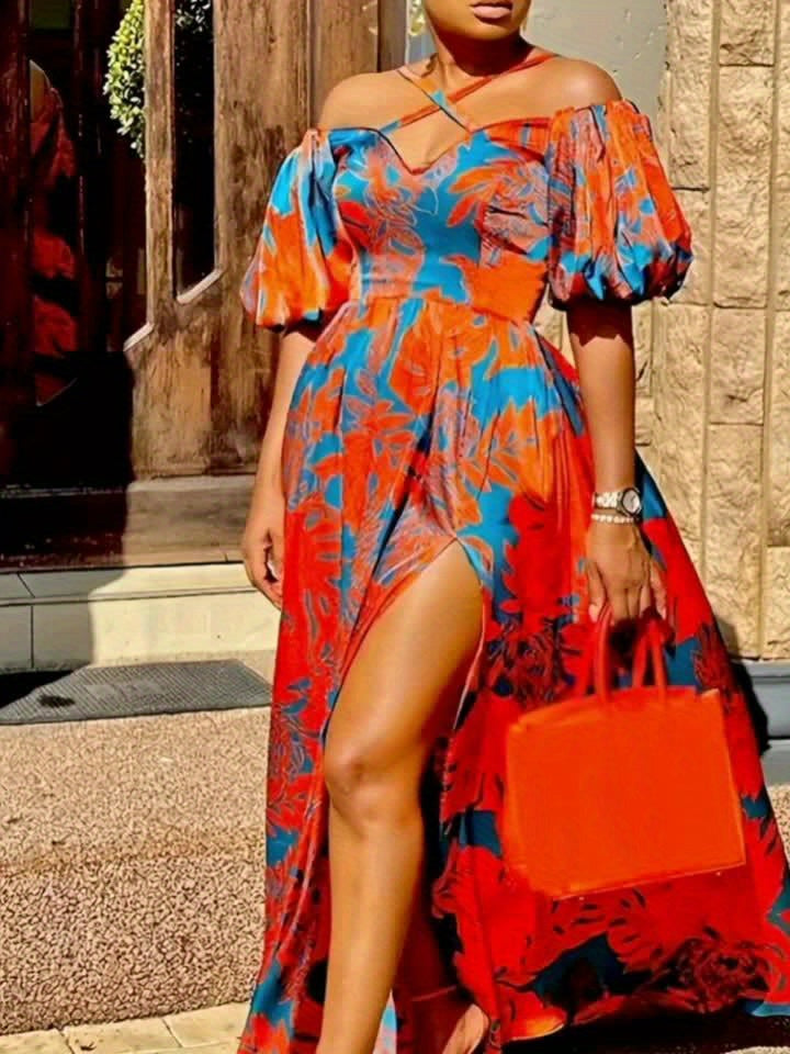 Tropical Print Criss Cross Mini Dress