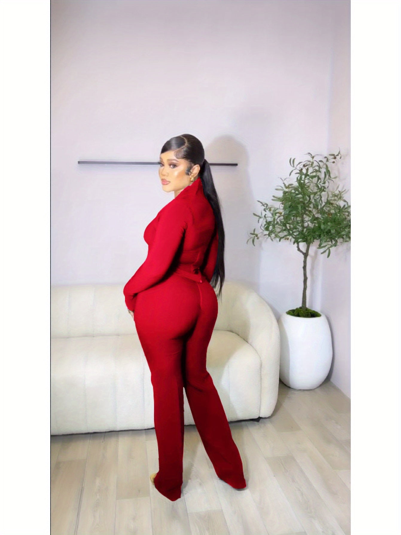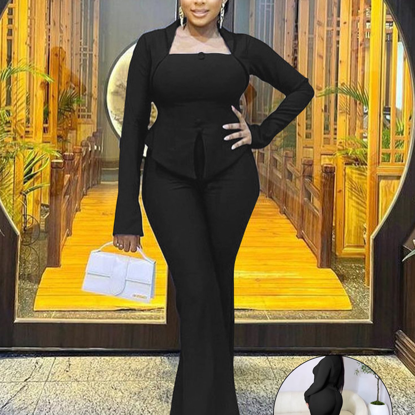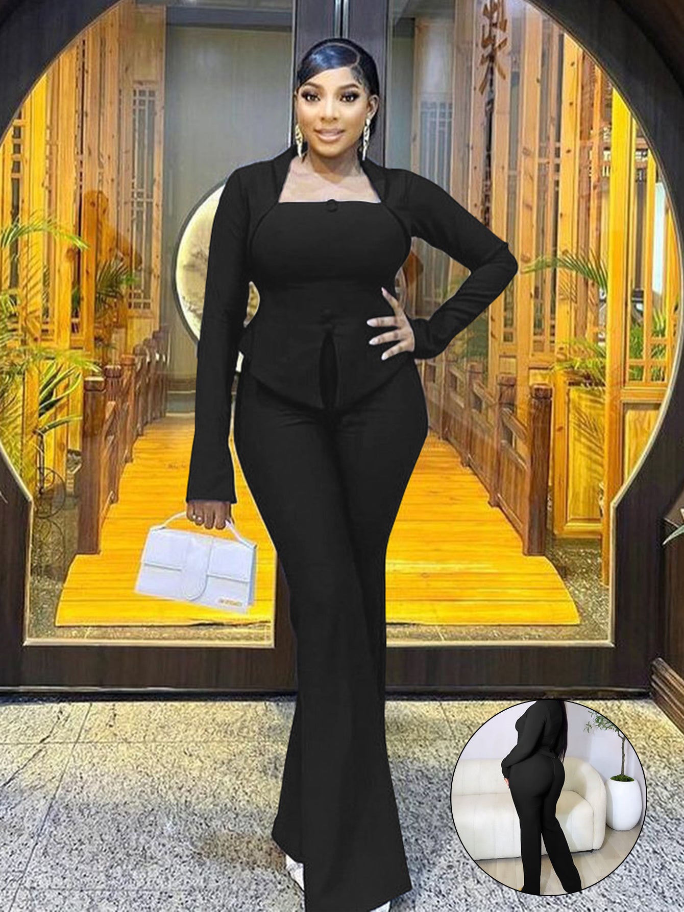 Squared Neck Button Detail Split-Front Top with Flare Pants – Chic Two-Piece Outfit