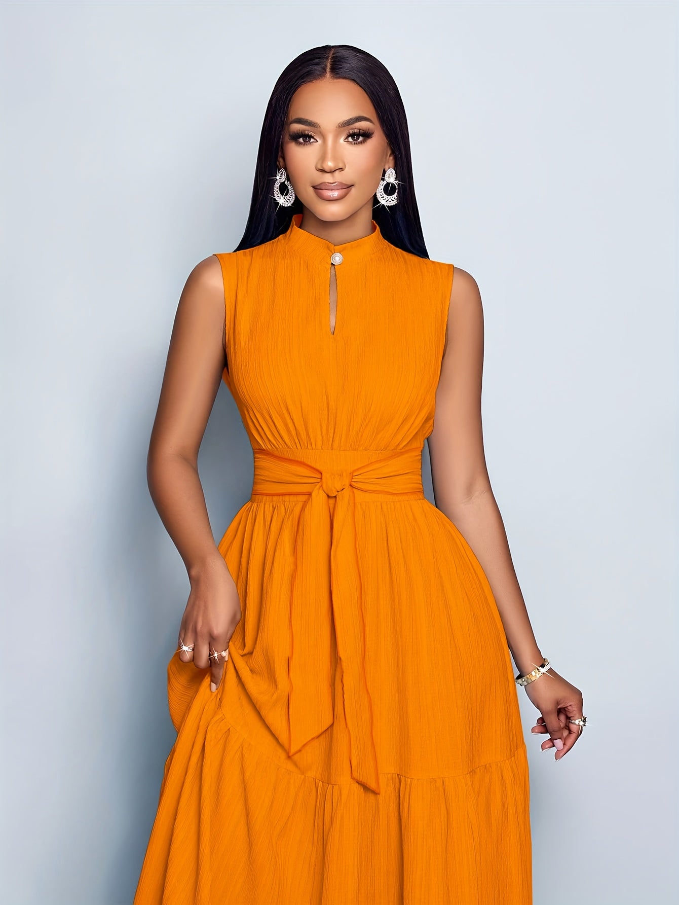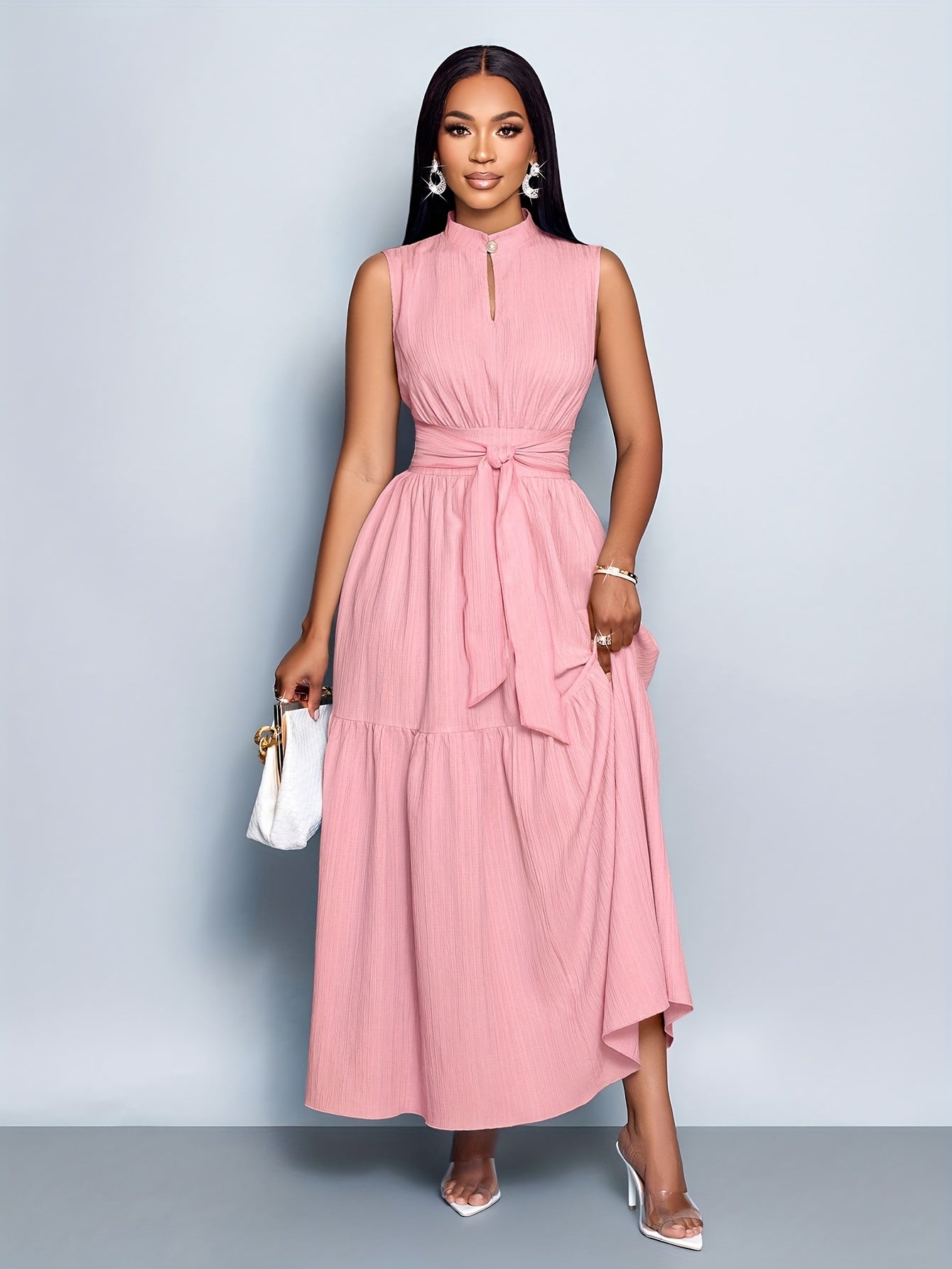 Textured Belted Summer Dress – Ruffled Hem & Lightweight Sleeveless Fit