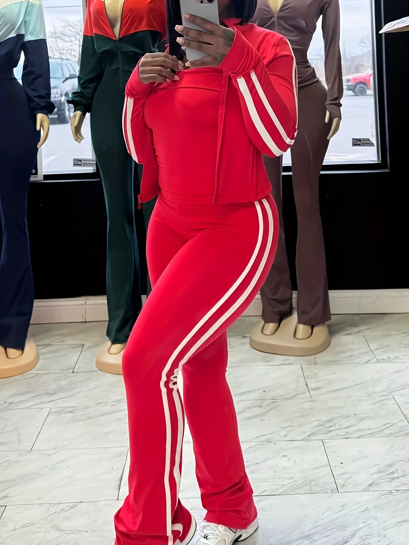 Striped Jacket Bell Bottom 3-Piece Pants Set