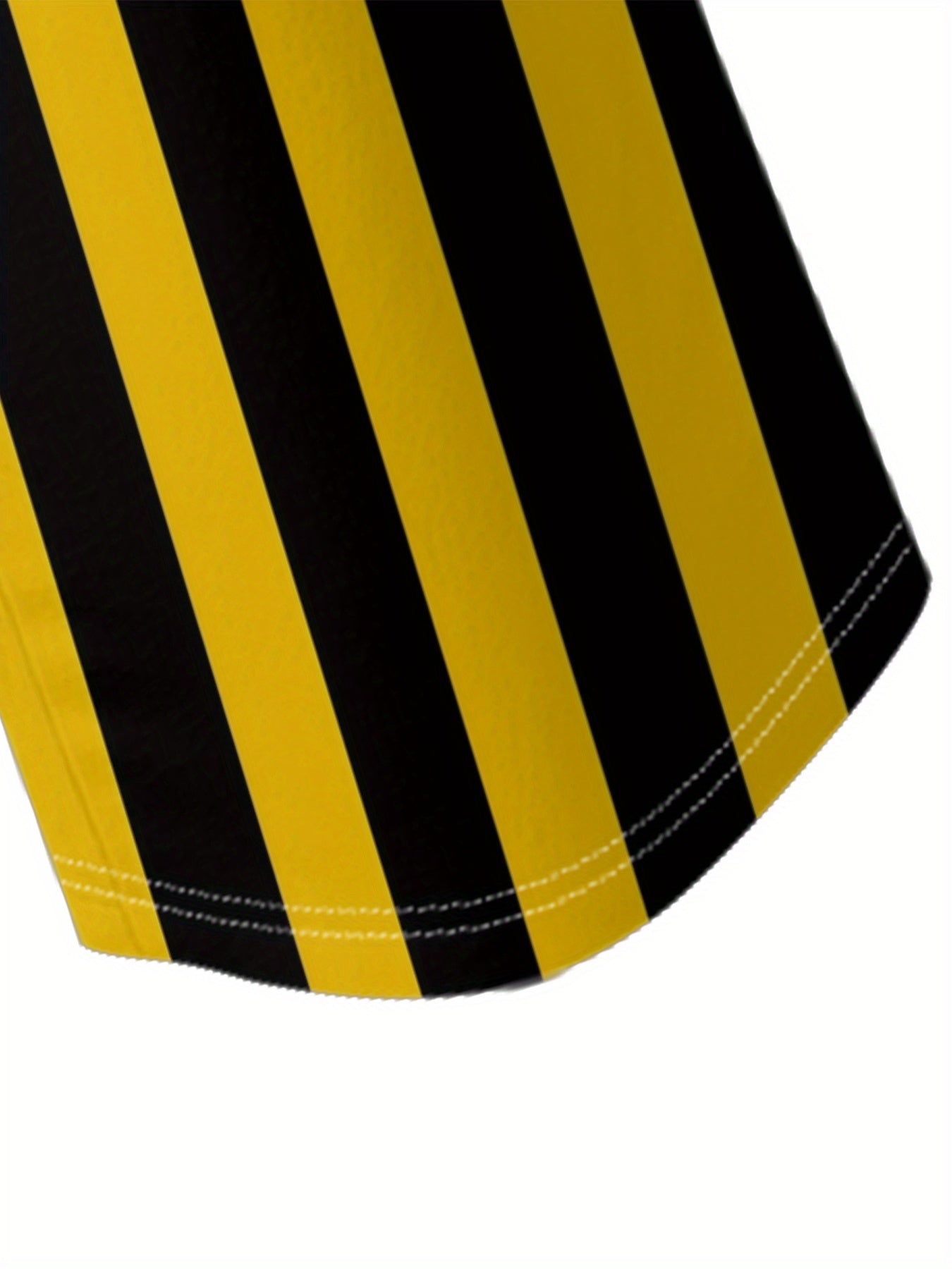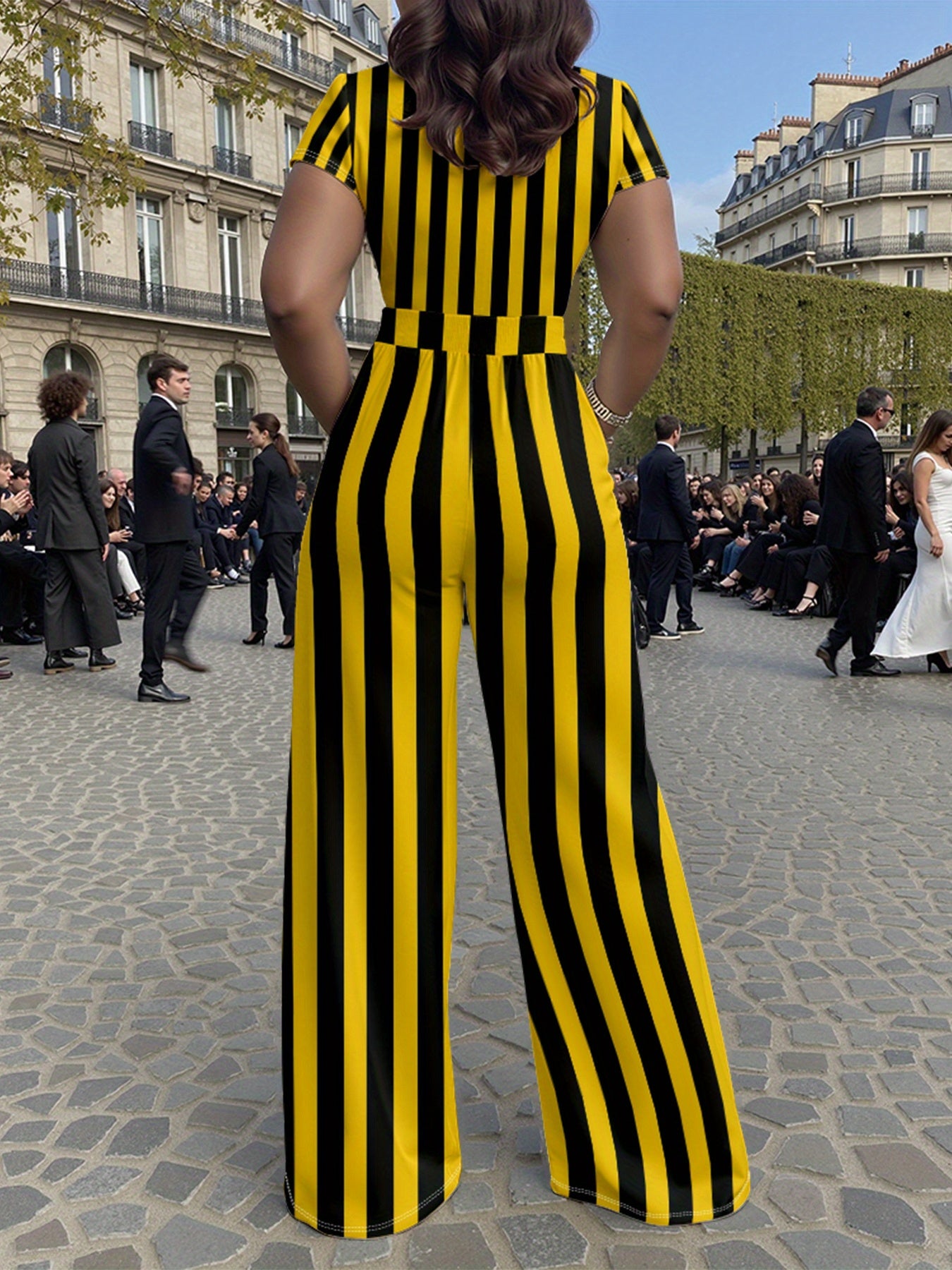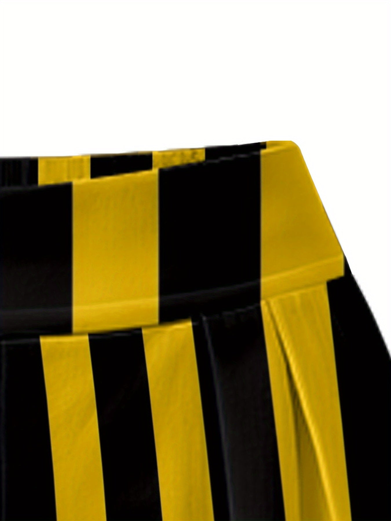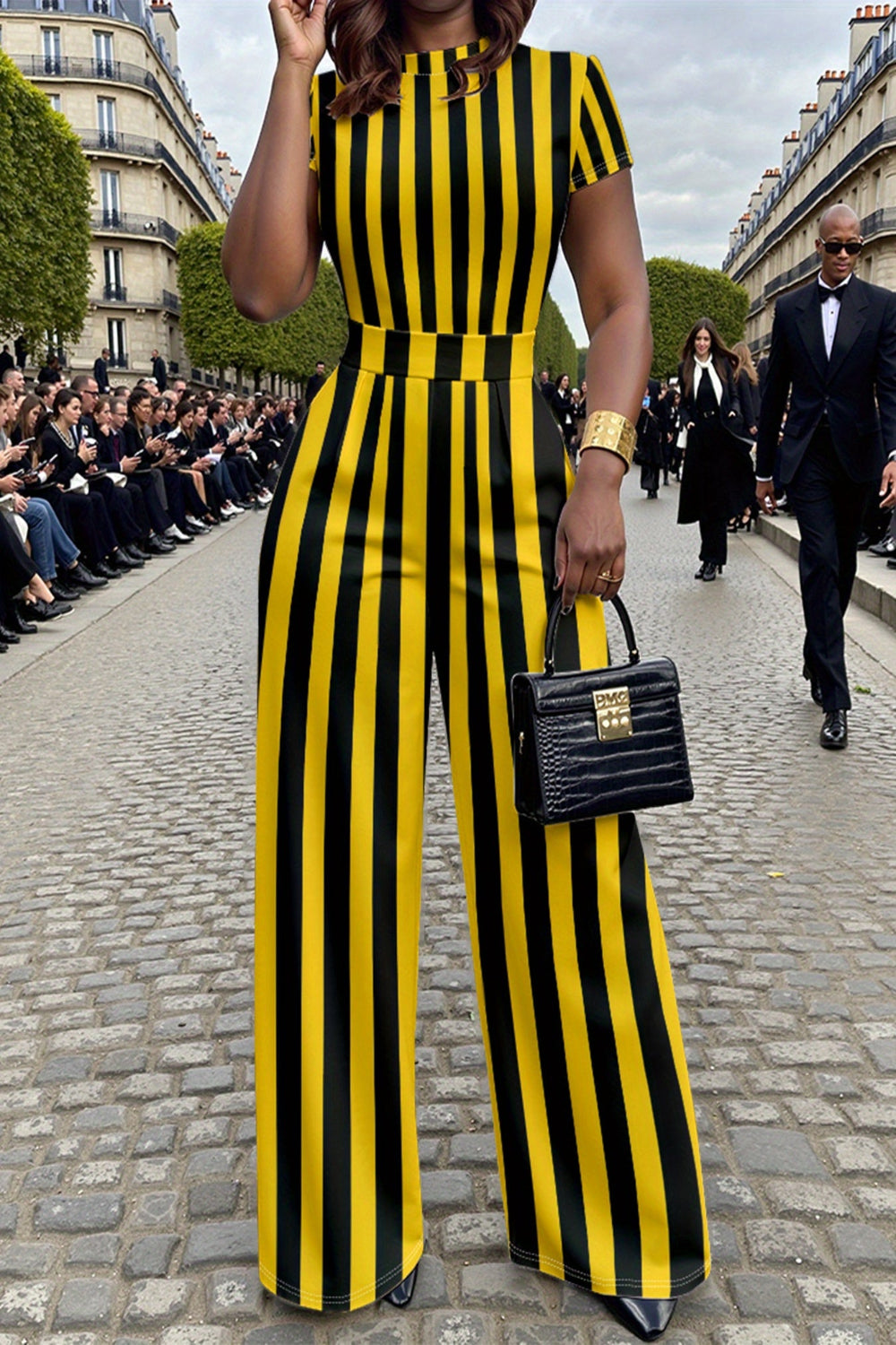 Yellow & Black Vertical Stripe Pants Set – Short Sleeve Top and Trouser Co-ord